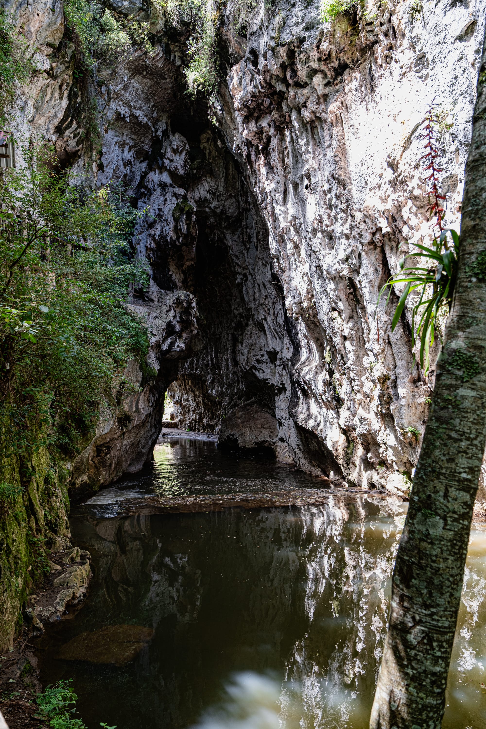 Behind the legend lies the slower, verifiable history of the formation. The arch is a natural bridge created by Río Fogótico’s long interaction with the limestone beneath San Cristóbal. Over thousands of years, the river cut downward, carving cavities, openings, and eventually the span visible today. Water continues to shape the stone, though the process is incremental—small shifts, mineral drips, and seasonal flows recording themselves subtly on the surface.