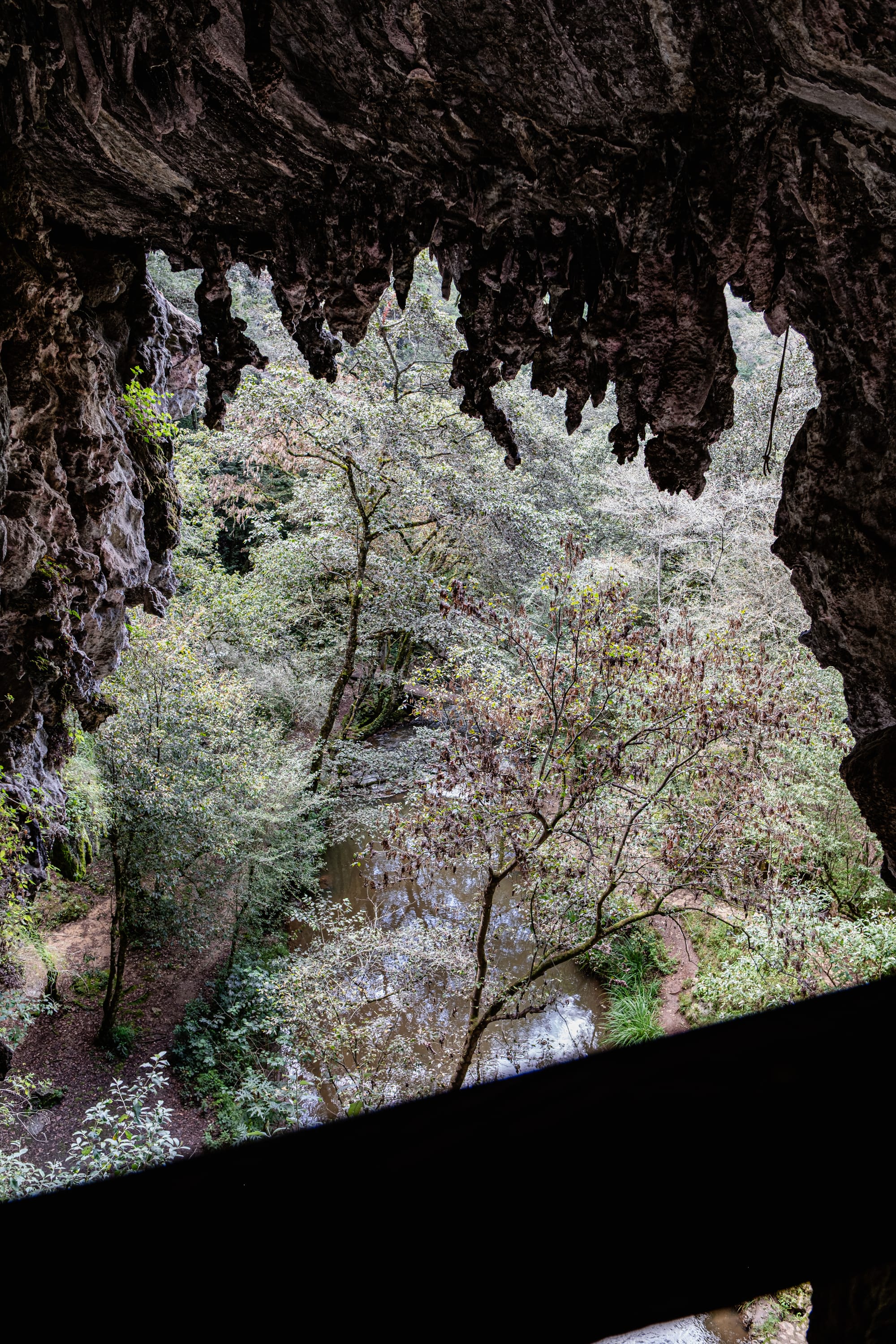 The caves at Arcotete are not sprawling caverns; they are a network of modest chambers and connecting passages that carry the imprint of water’s long presence. In some areas, the walls are smooth where mineral deposits once flowed. In others, jagged lines mark where rock fractured along natural weaknesses. A few openings look out toward the river below, framing the water between uneven edges of stone.