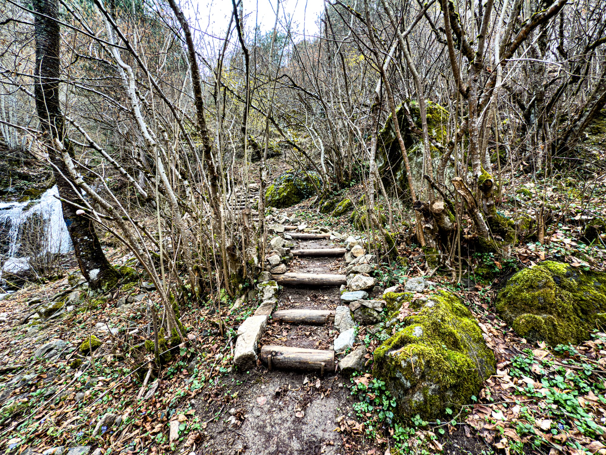 One of the highlights along the route was St. Nicholas Waterfall, a cascade tucked into the folds of the mountain. The sound reaches you first, the rush of water echoing through the forest. Then, as the path opens, you see it: a veil of white water spilling down mossy rock, breaking into smaller streams that tumble across the ground before regrouping and rushing downhill.