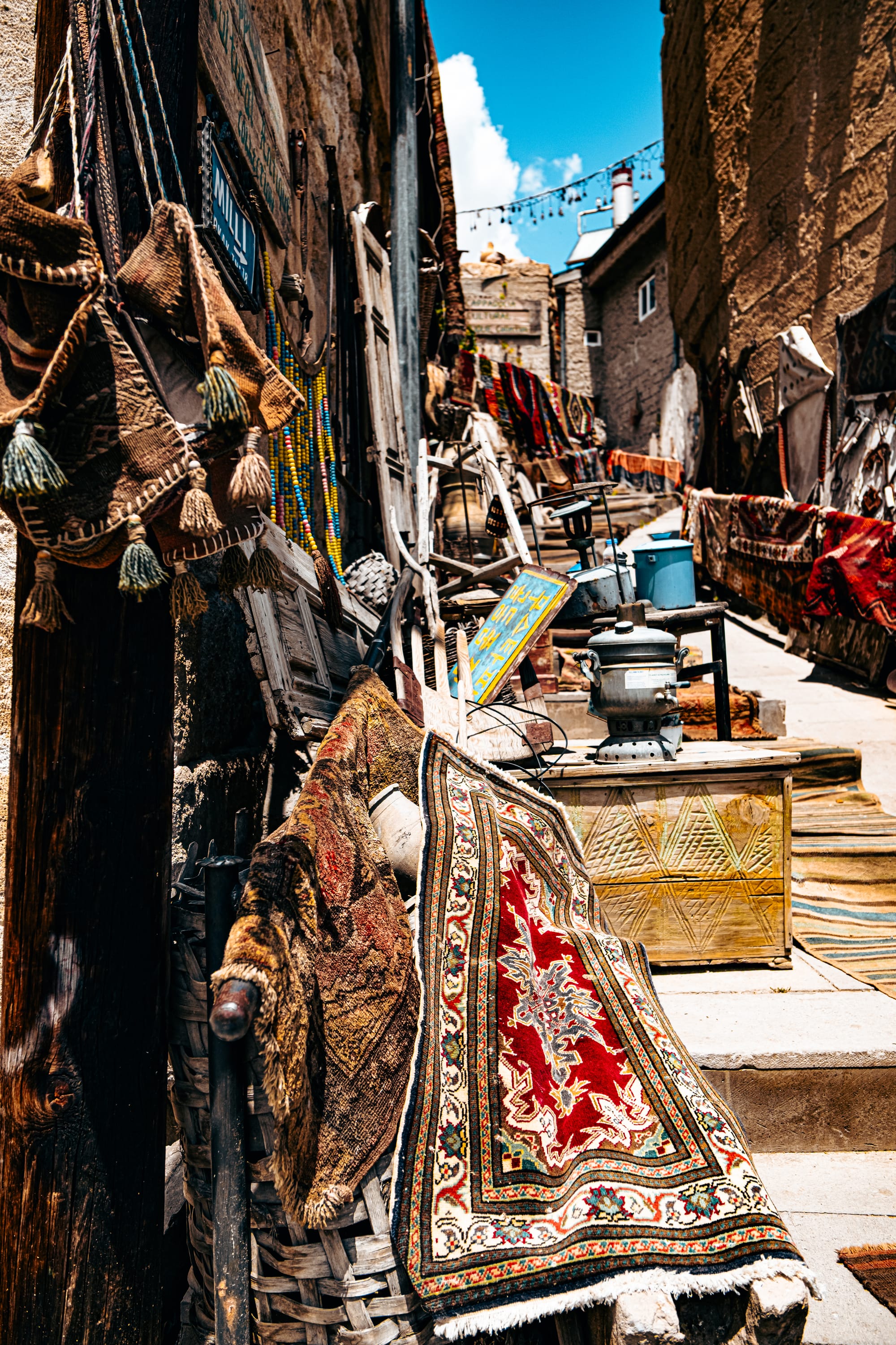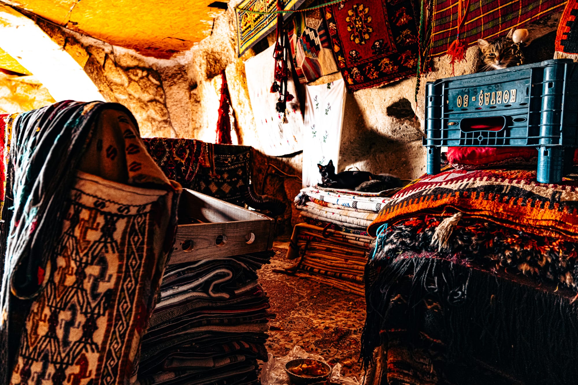 Even the alleyway leading here, lined with stacked carpets and hanging kilims, makes for an irresistible shot. Every shift in light transforms the space into something new.