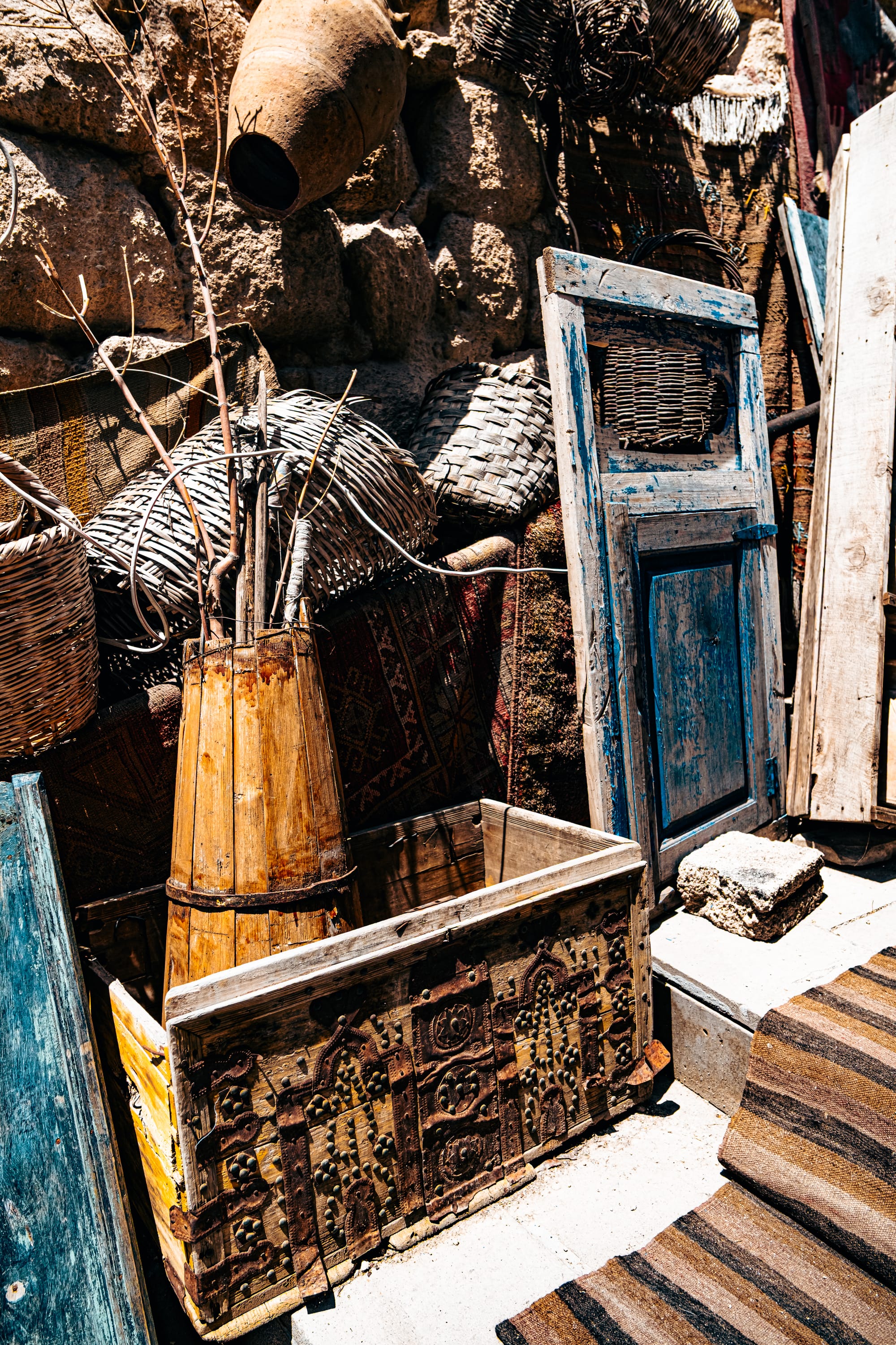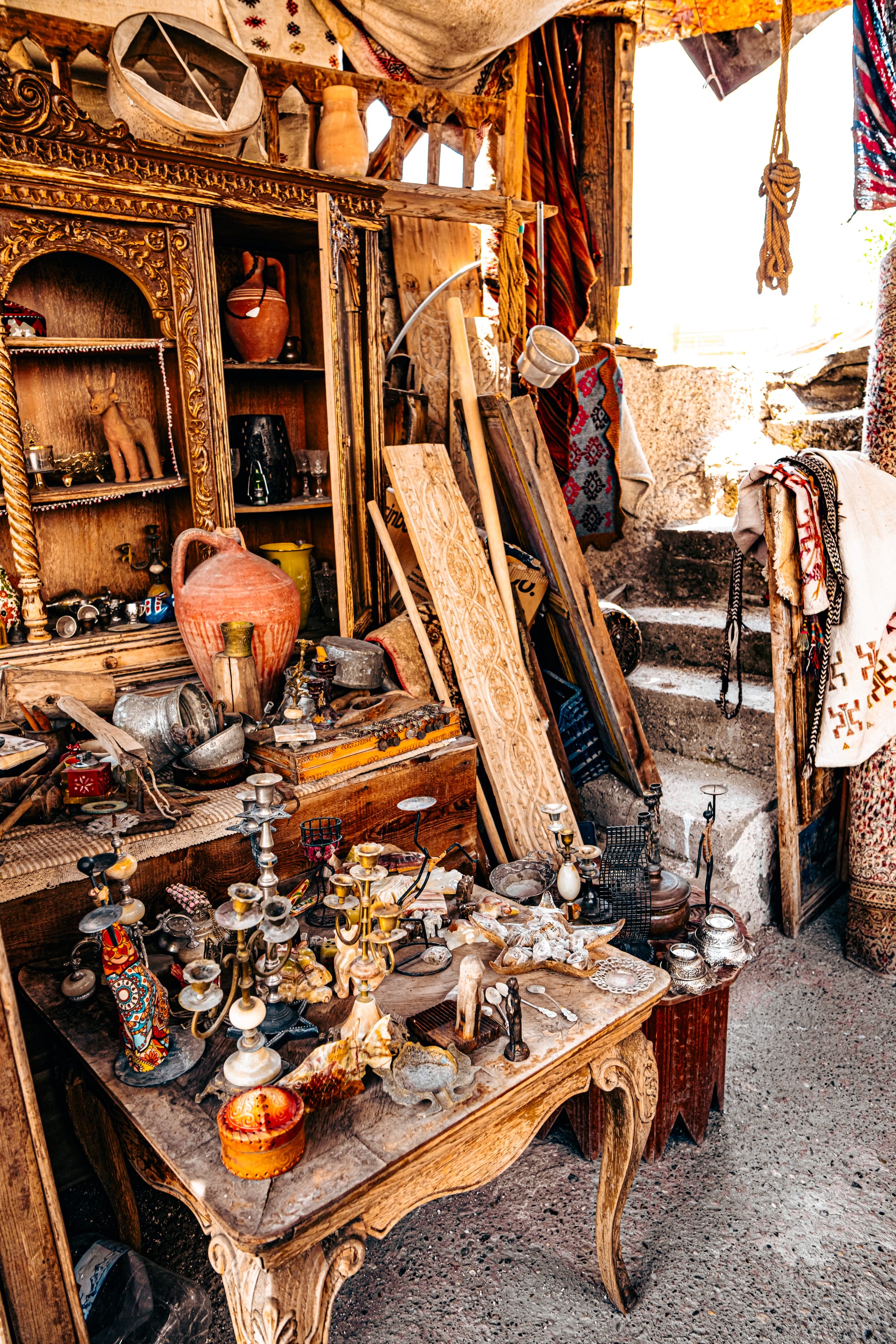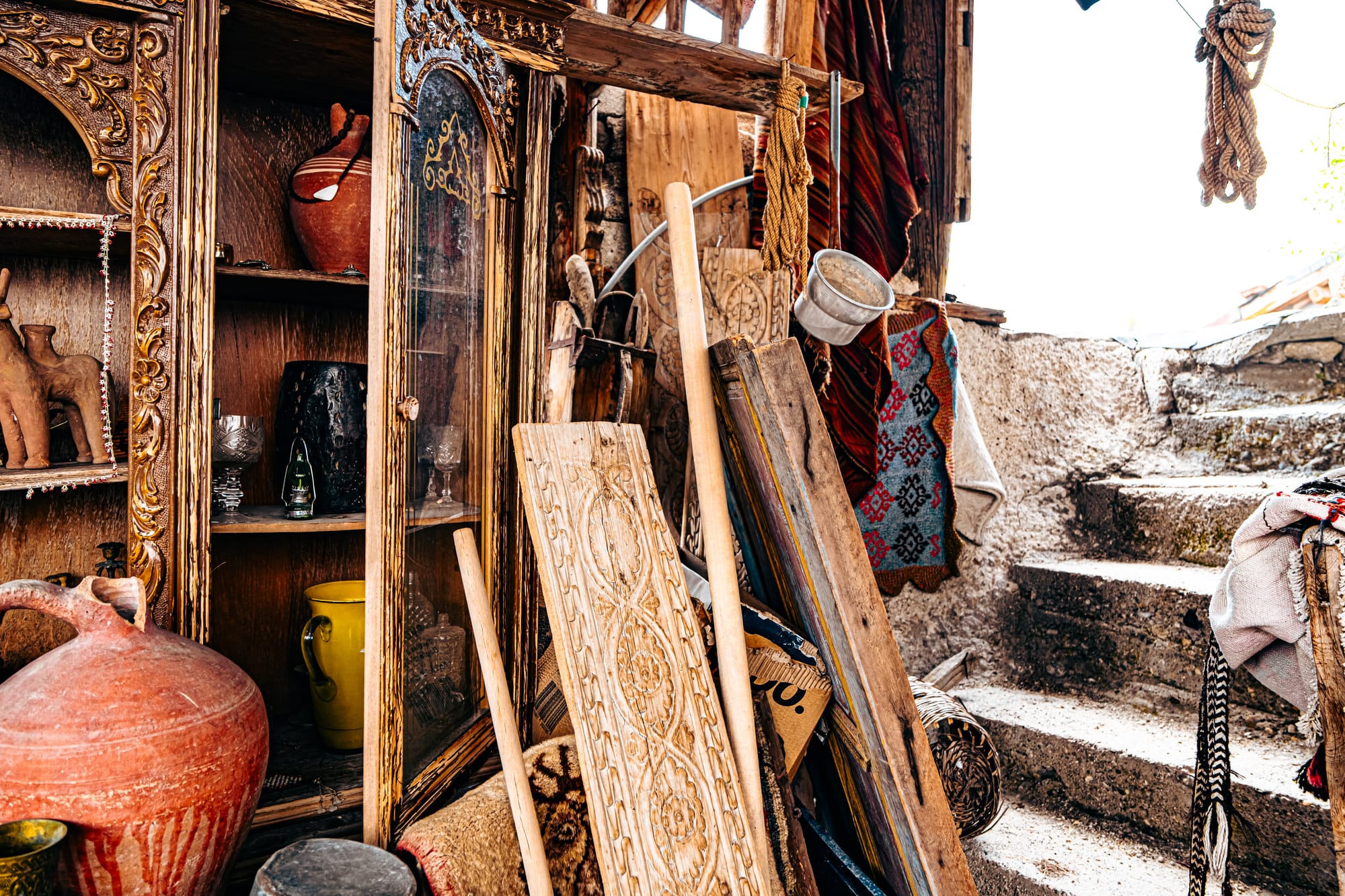 You’ll find everything from agricultural tools to woven wall hangings, from ceramic jugs to ornate doorframes salvaged from old homes. The sense of history here is tangible.