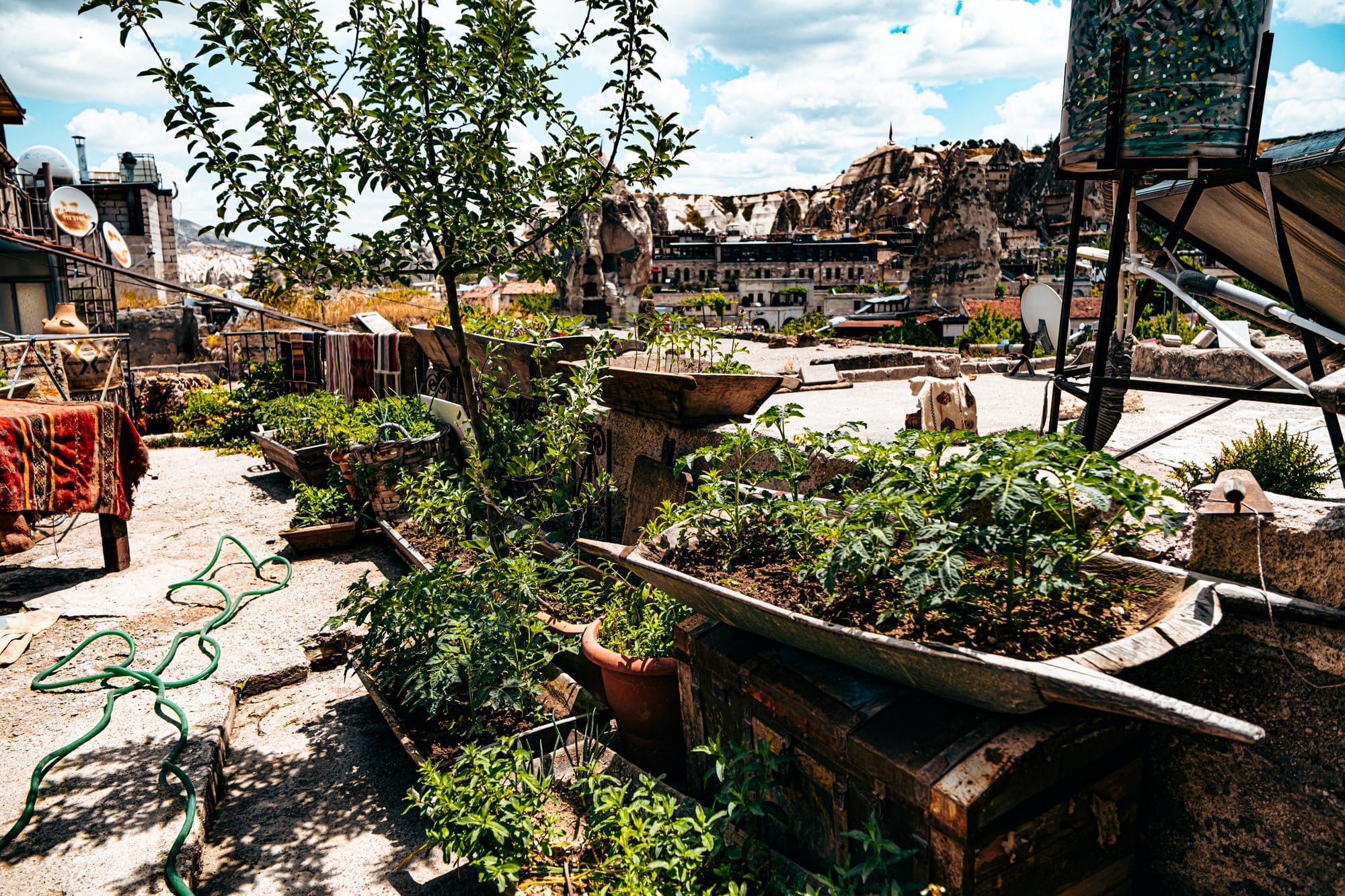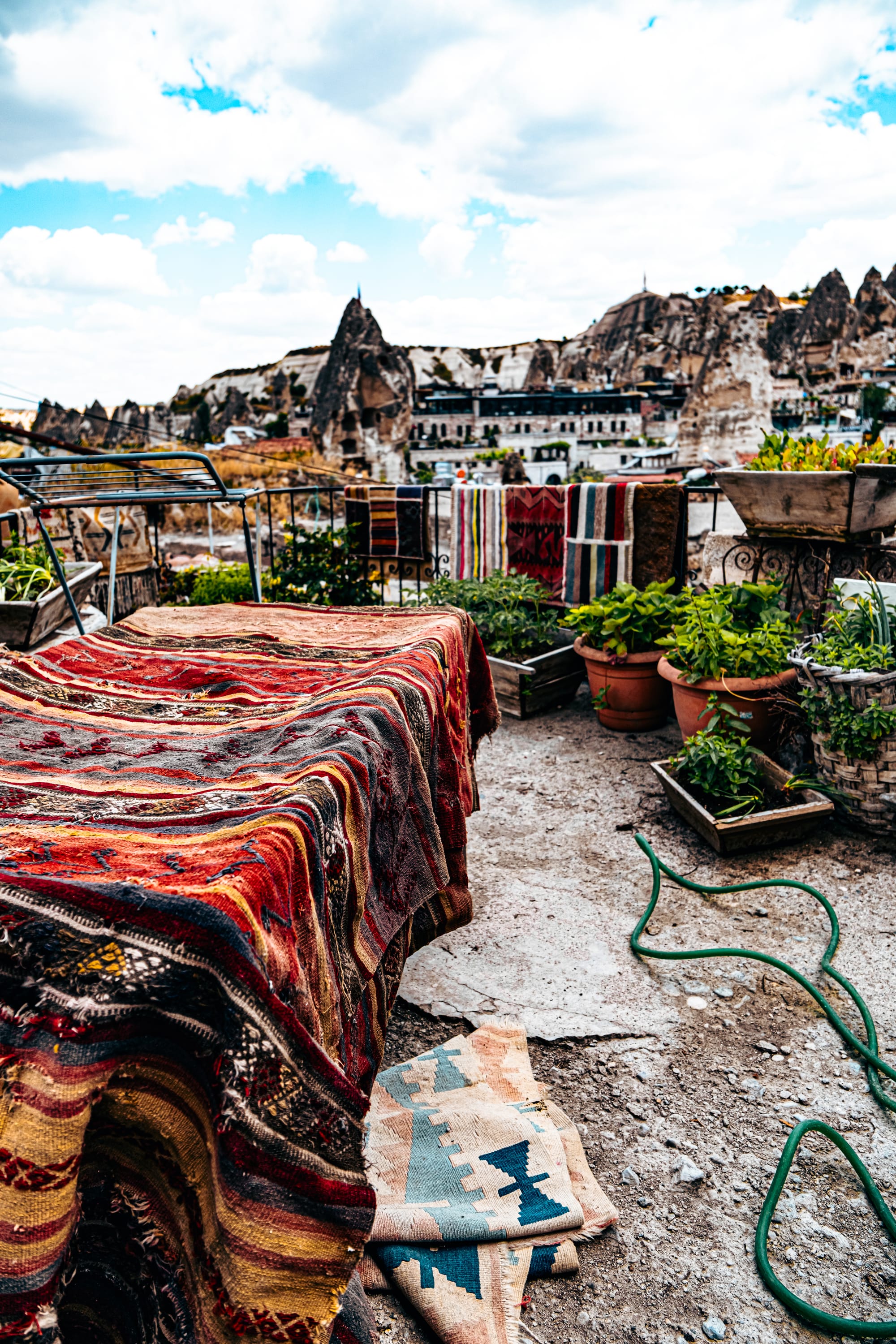 It’s a quiet place to pause, take in the scenery, and appreciate the slower rhythm away from the crowds. From here, you can watch daily life below or simply soak in the textures of laundry lines, rooftop gardens, and the ever-present Cappadocian light.