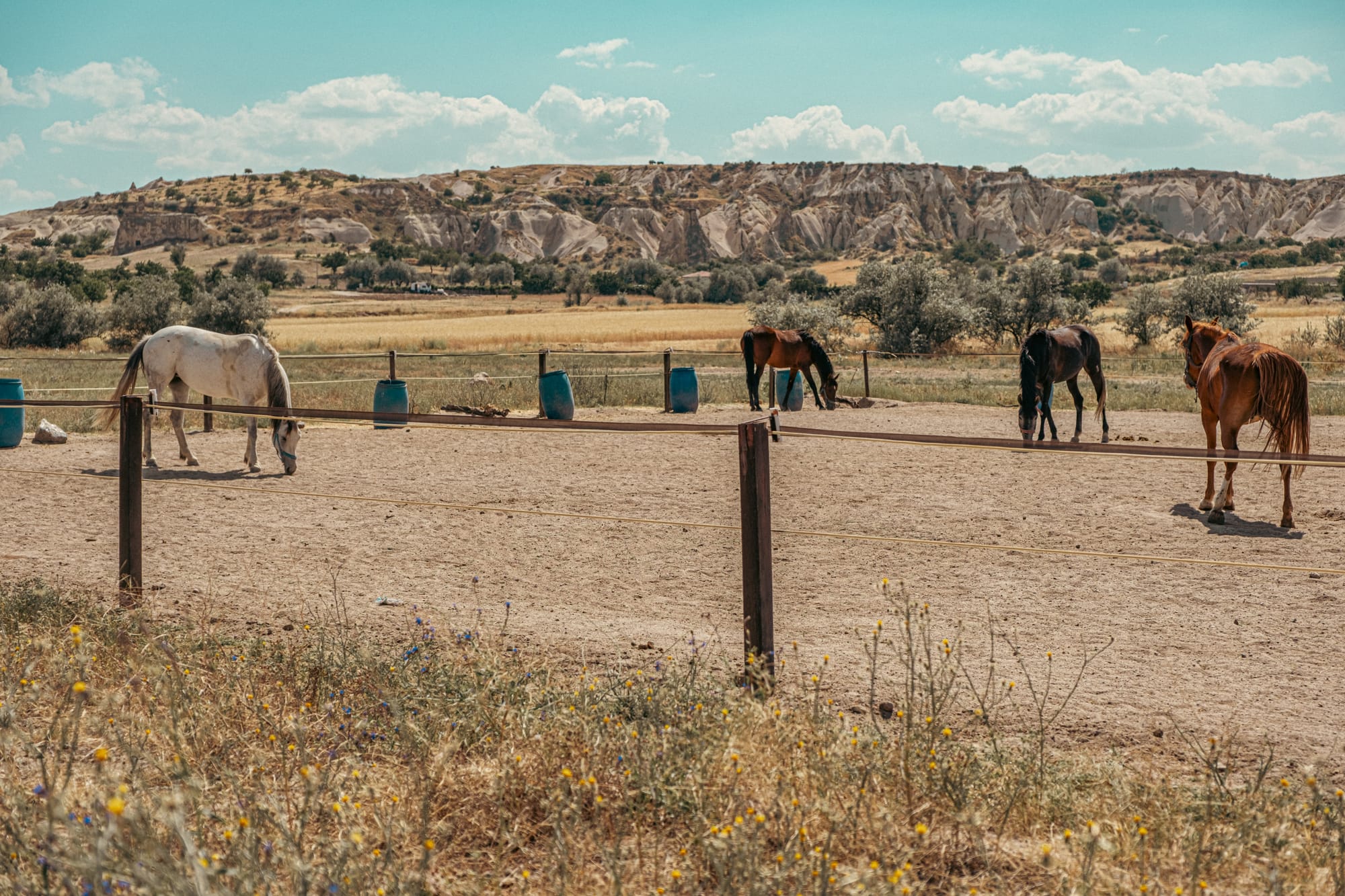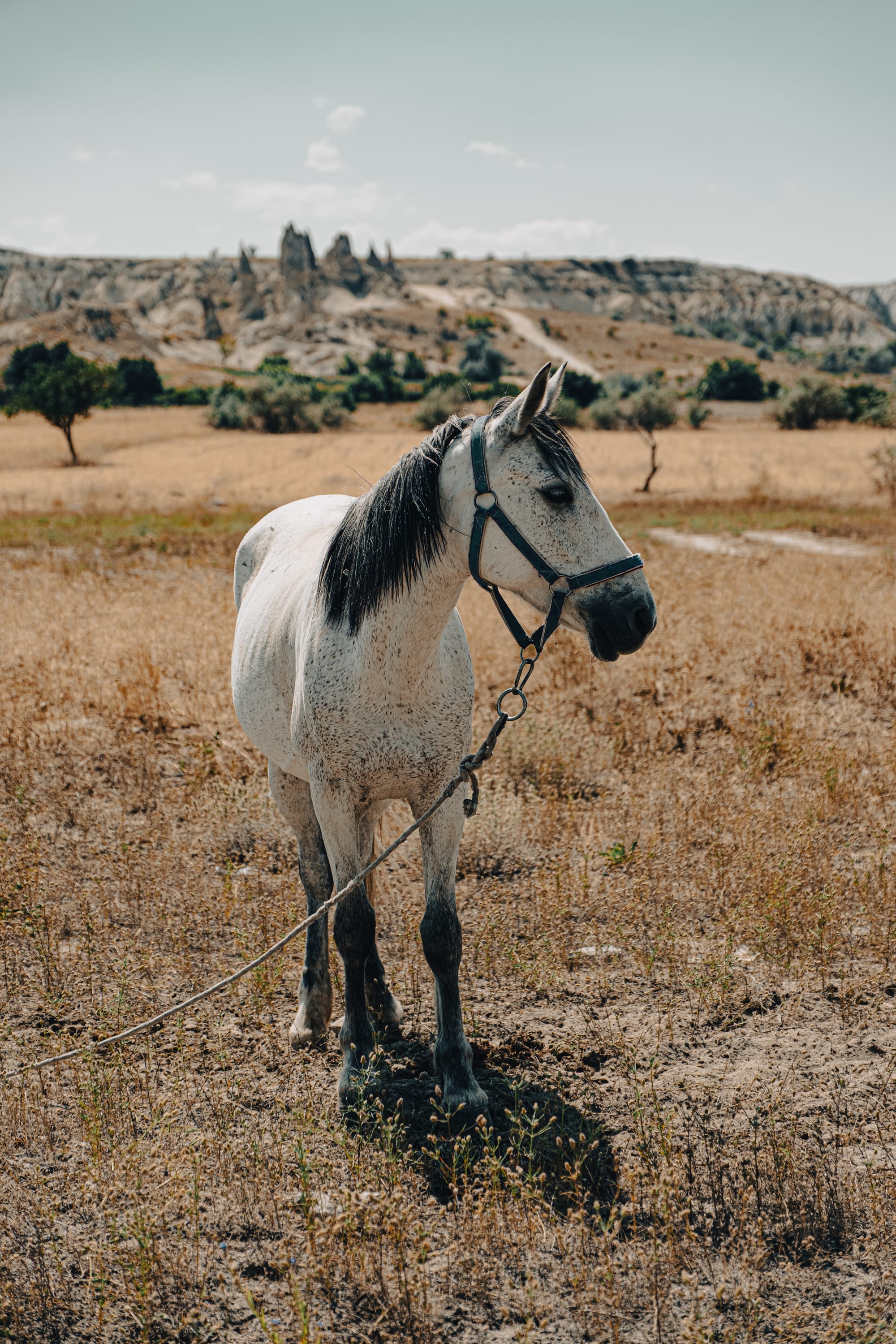 Our journey to Çavuşin began at Moonlight Ranch, a short walk away. The path is simple to follow, winding through open fields and pastures. Along the way, we passed other horse ranches, where herds grazed lazily under the Cappadocian sun. Their sleek coats glistened in the light, and the occasional snort or flick of a tail was the only sound breaking the stillness.