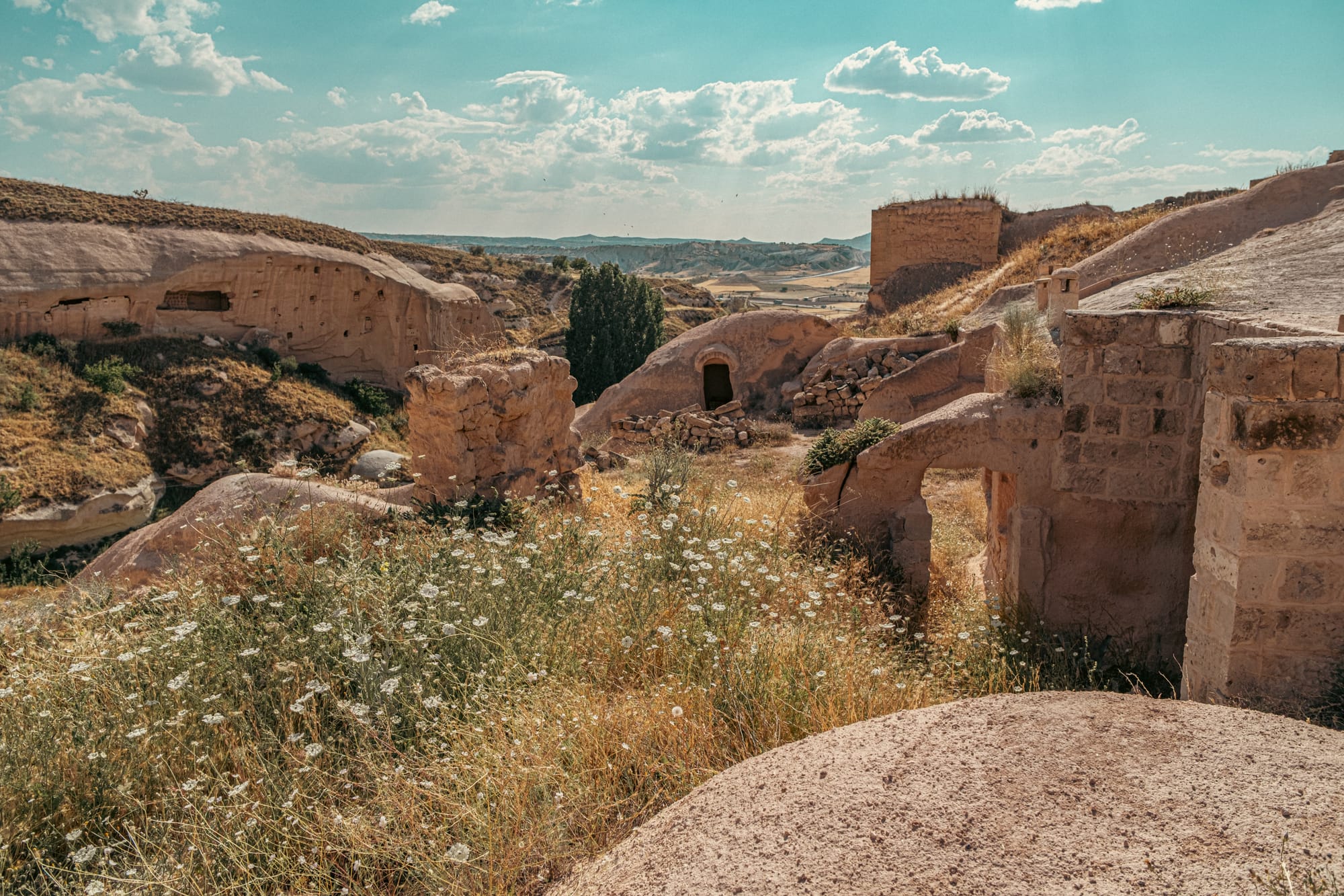 Scenes of horses and wildflowers on the walk to Çavuşin Castle