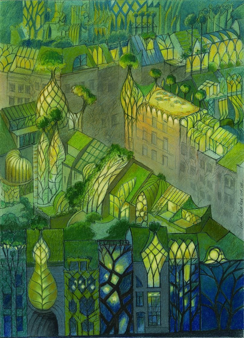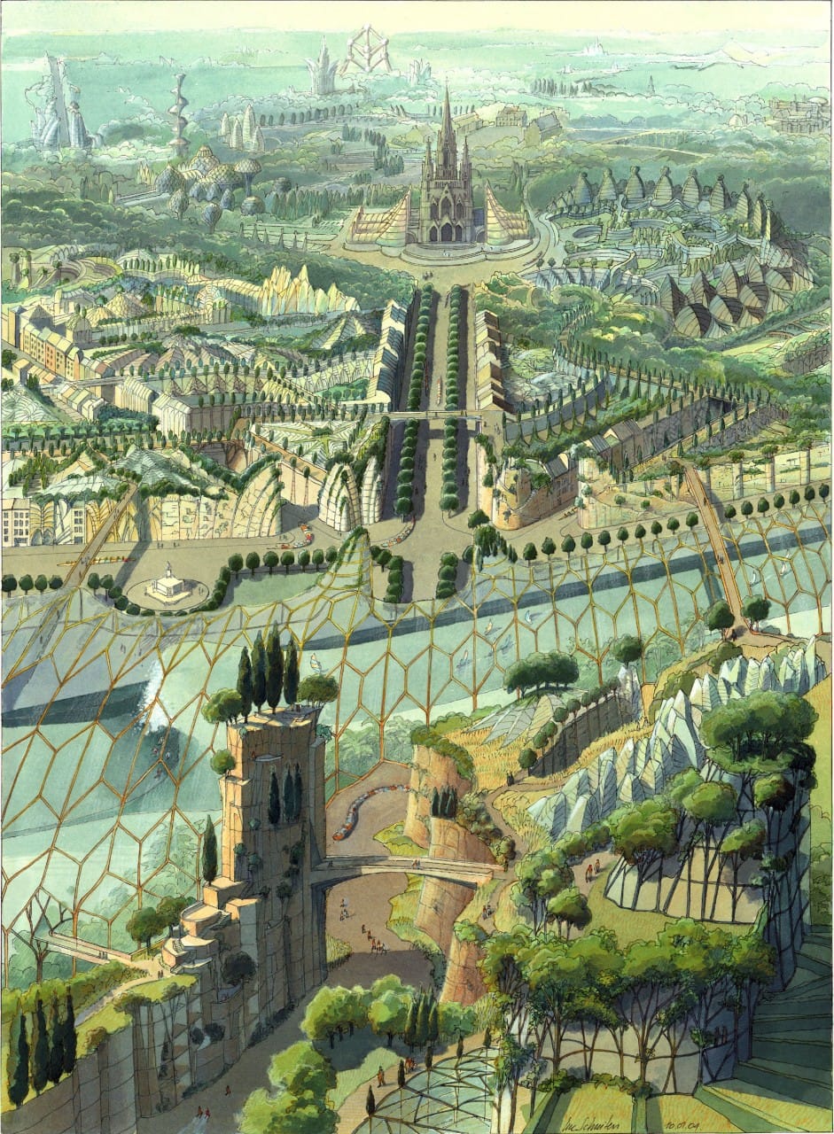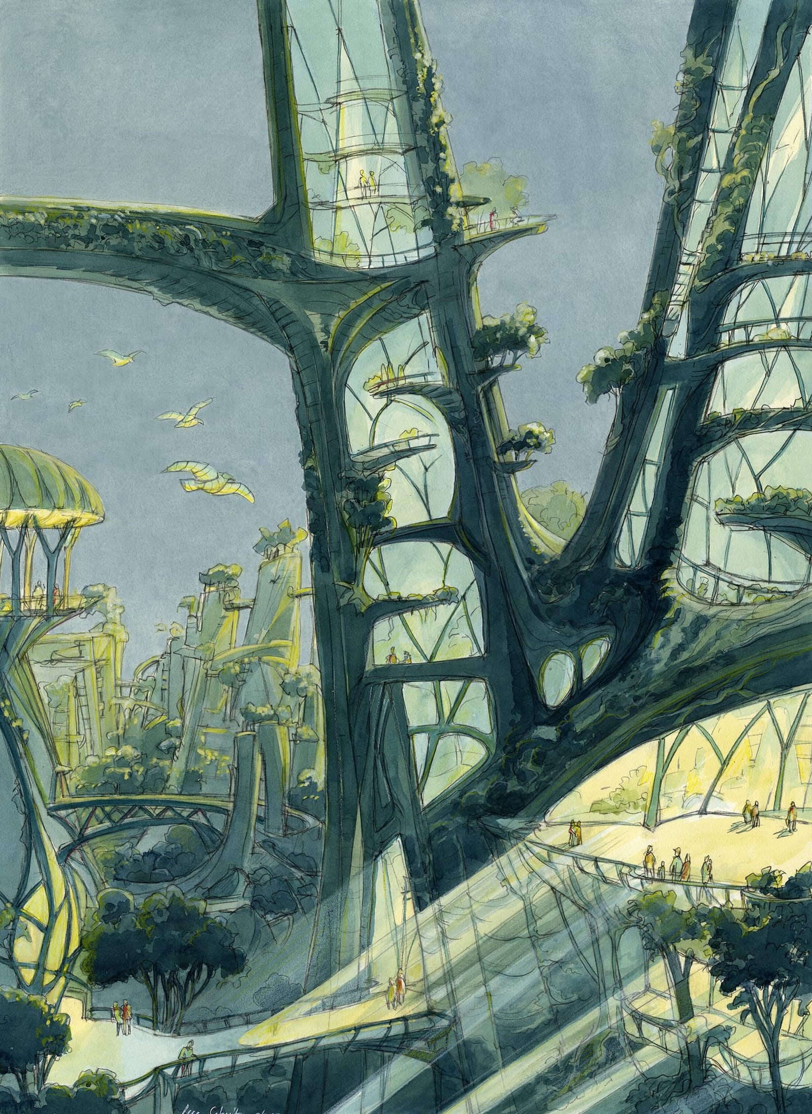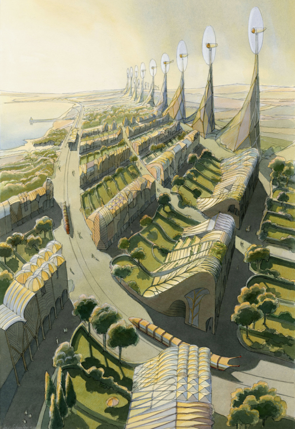 Parallels have been drawn between Schuiten’s work and the ethos of solarpunk, suggesting his architecture is an excellent depiction of the ecological futures the aesthetic movement imagines.