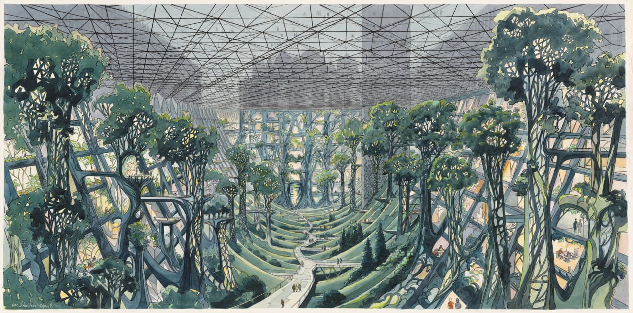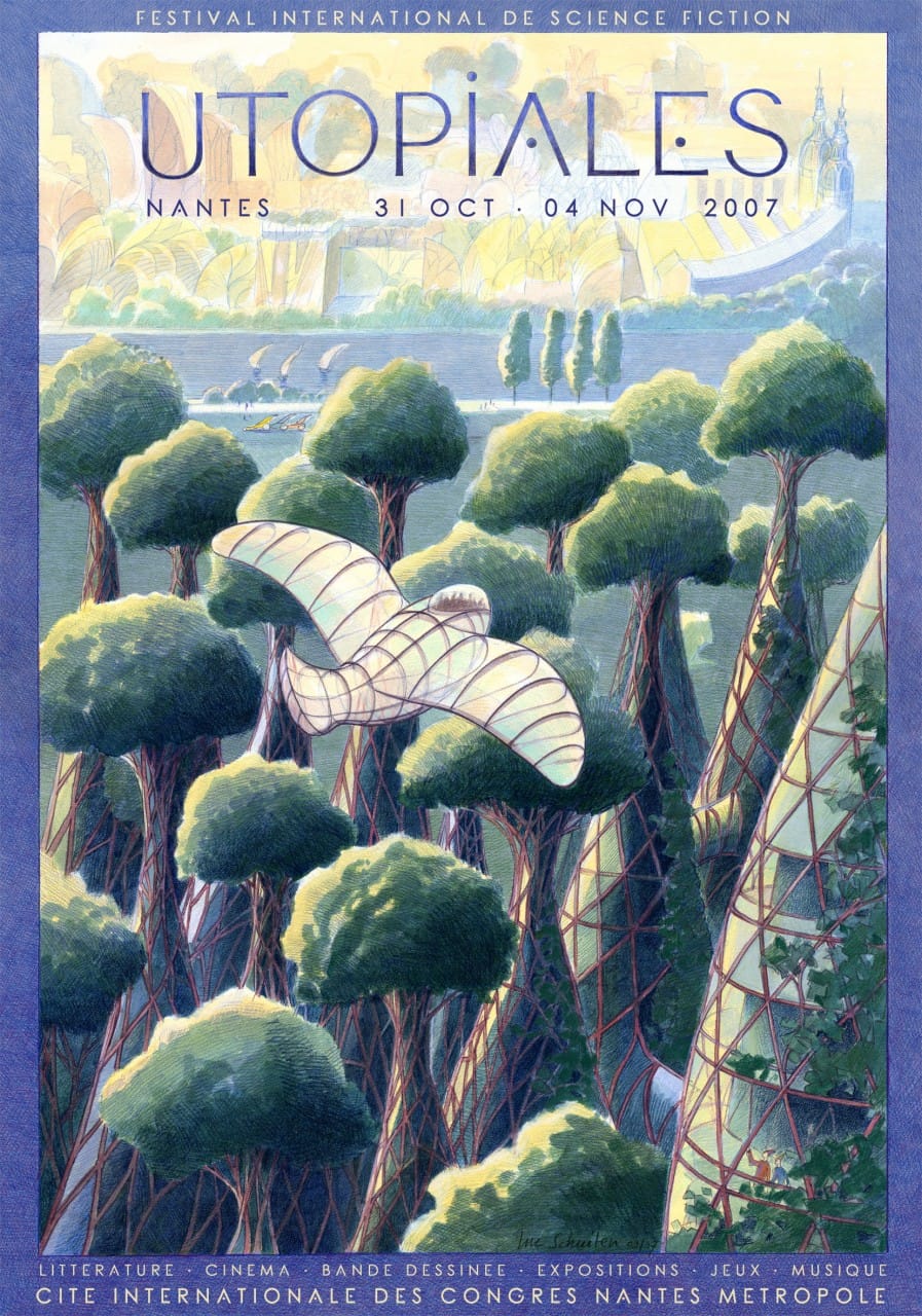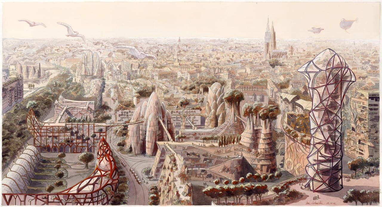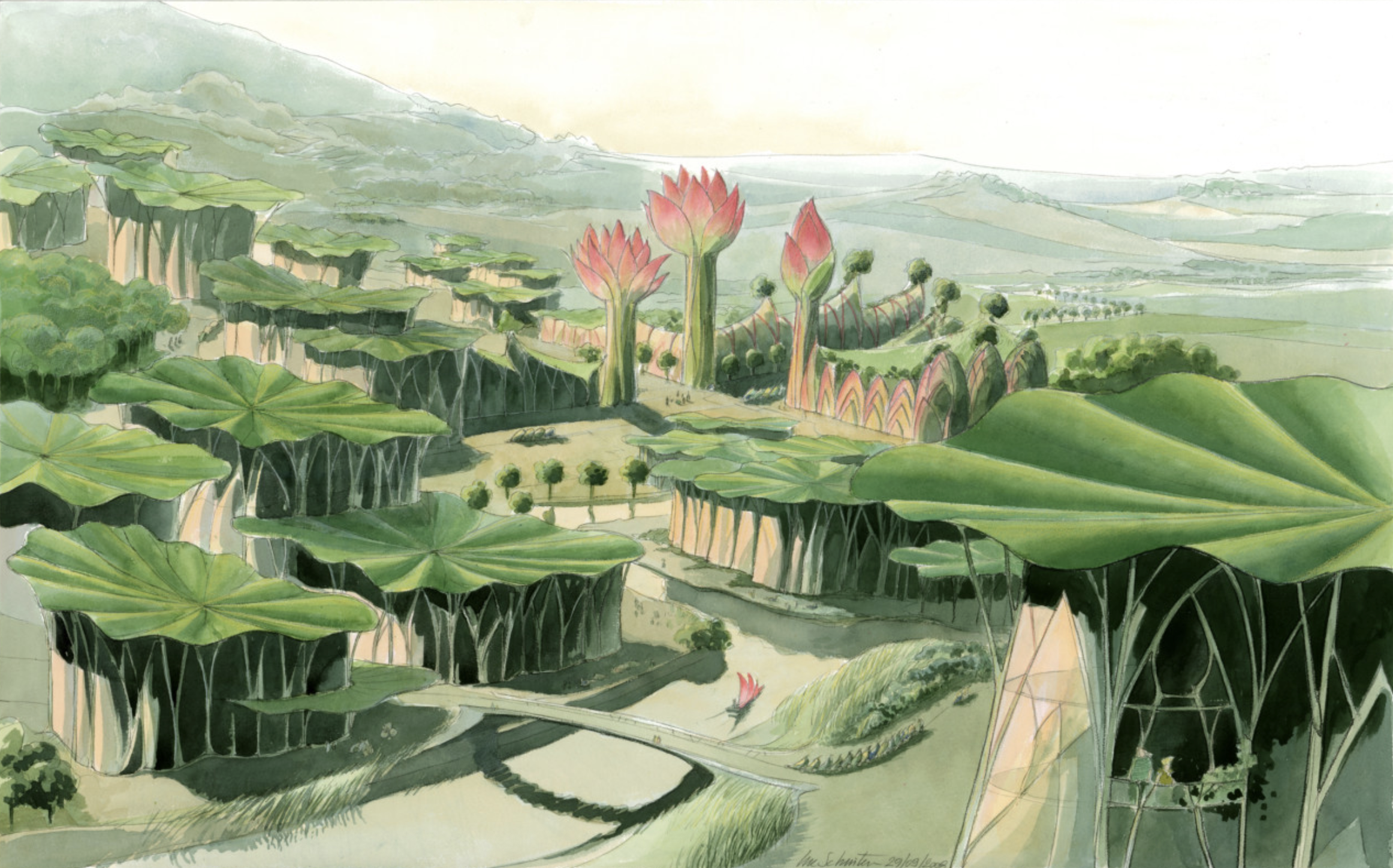 Luc Schuiten is a Belgian visionary artist known for his organic and free-flowing designs that depict built environments in harmony with nature.