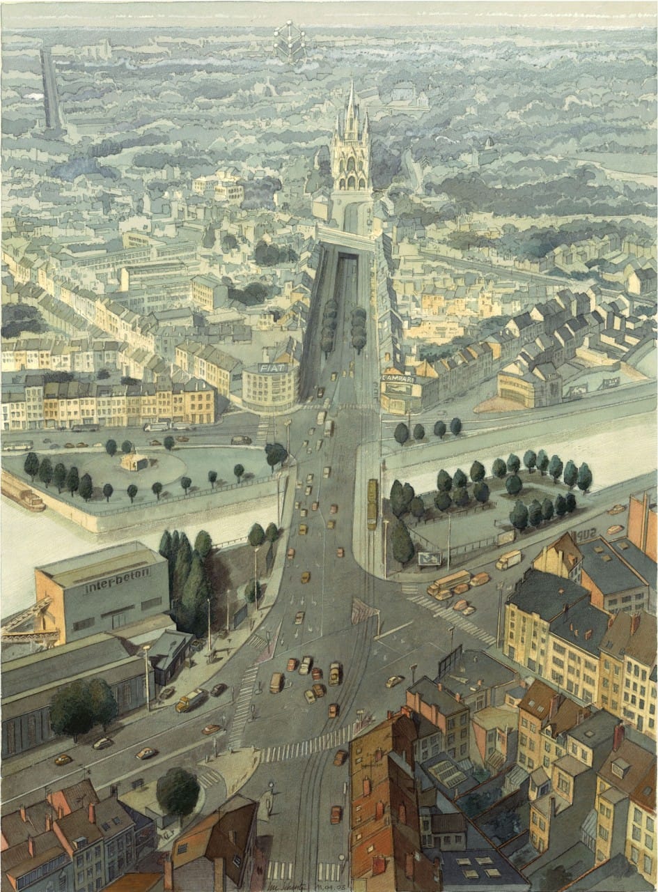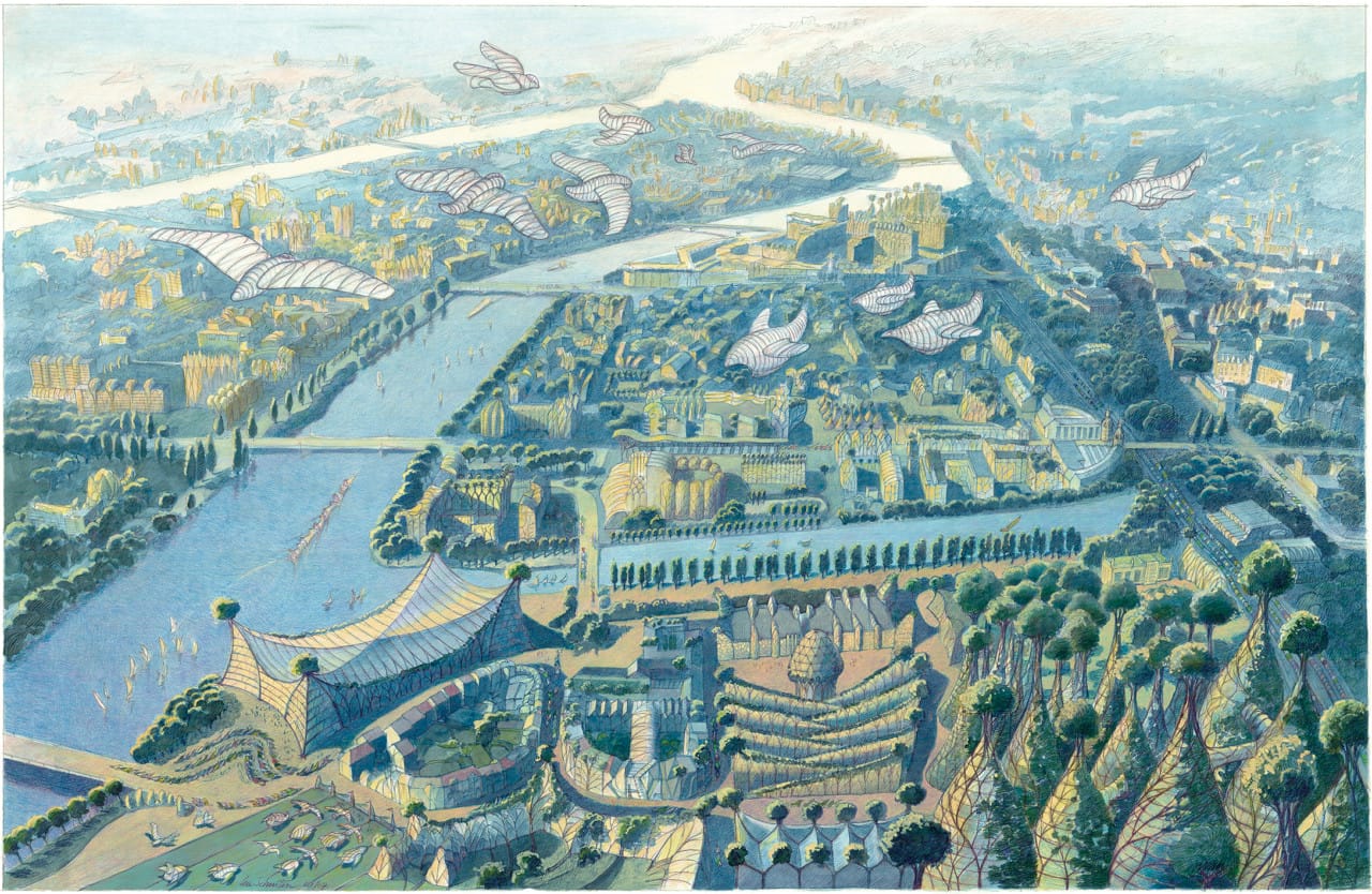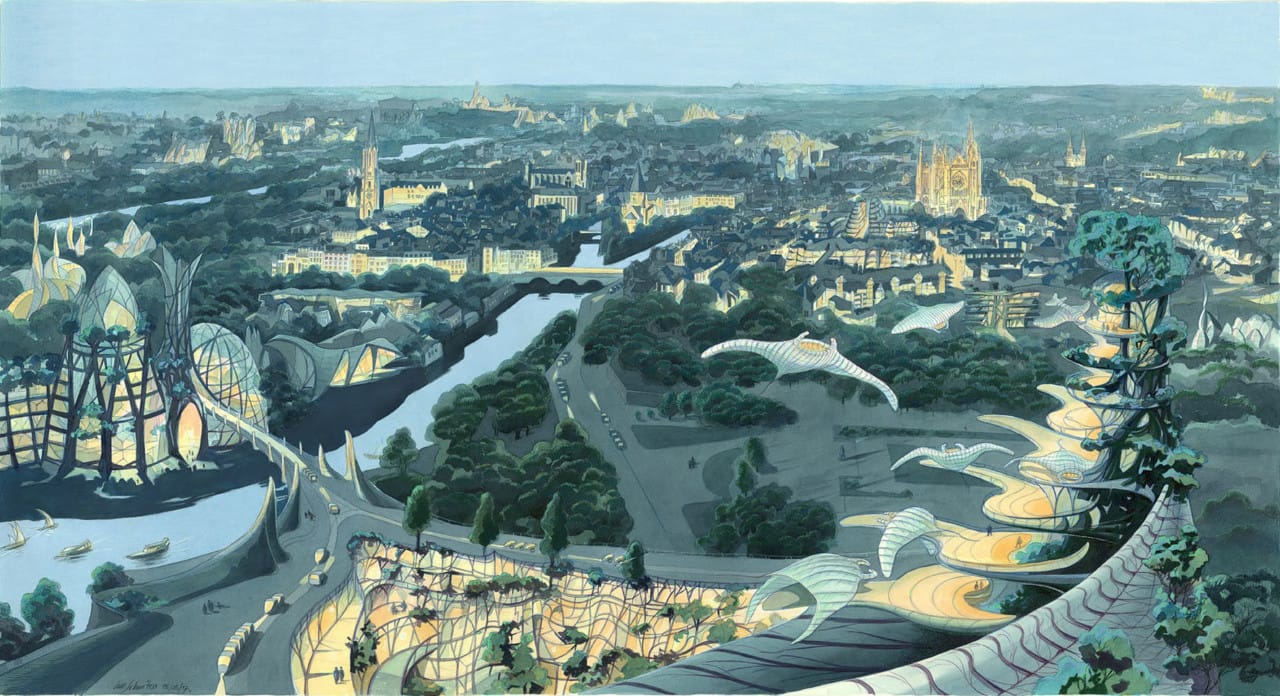 From his planes like birds and trains like caterpillars to his speculative series of futuristic renditions of existing cities, Schuiten presents an original and fantastical take on urban mobility, the built environment, and the sense of wonder ecological alternatives can evoke.