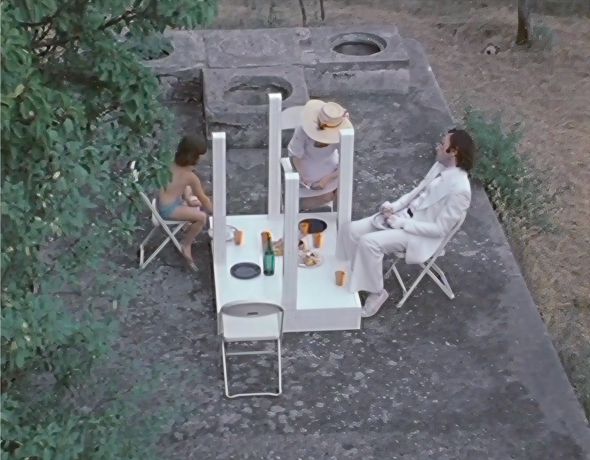 Superstudio's Ceremonia (1973) explores how architecture might dissolve into symbolic acts and social scripts rather than built forms. The film shows figures arranged in grids, circles, and processions across abstract terrains, suggesting that the structures that organize human life are not walls or monuments but the rituals and repetitions we enact together.