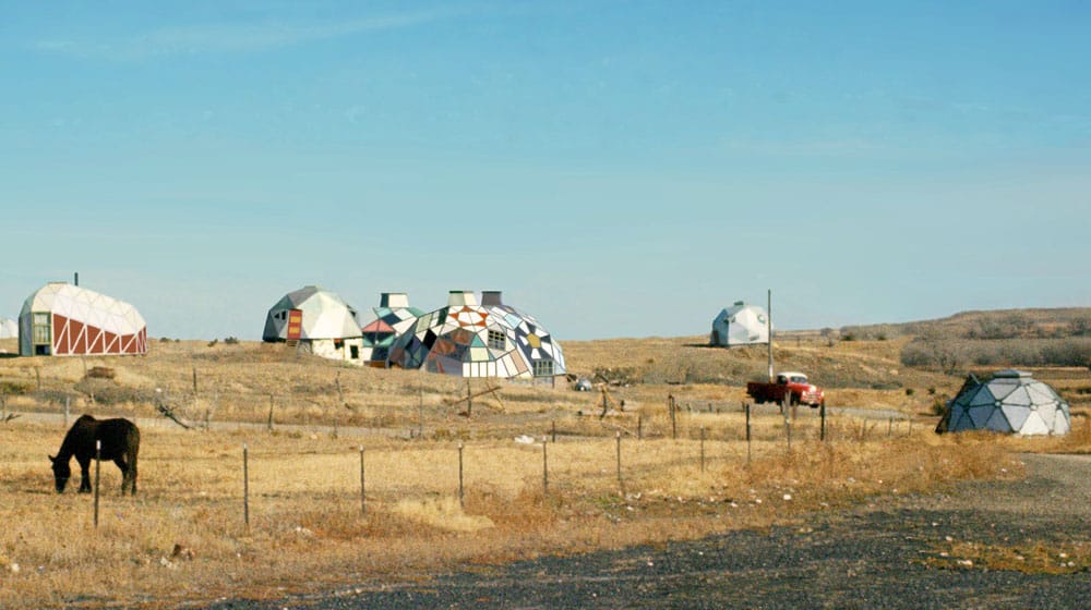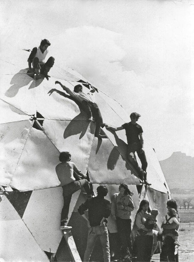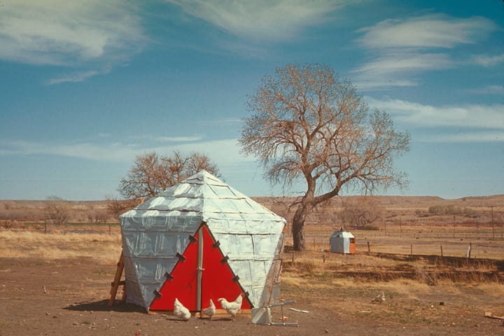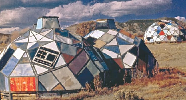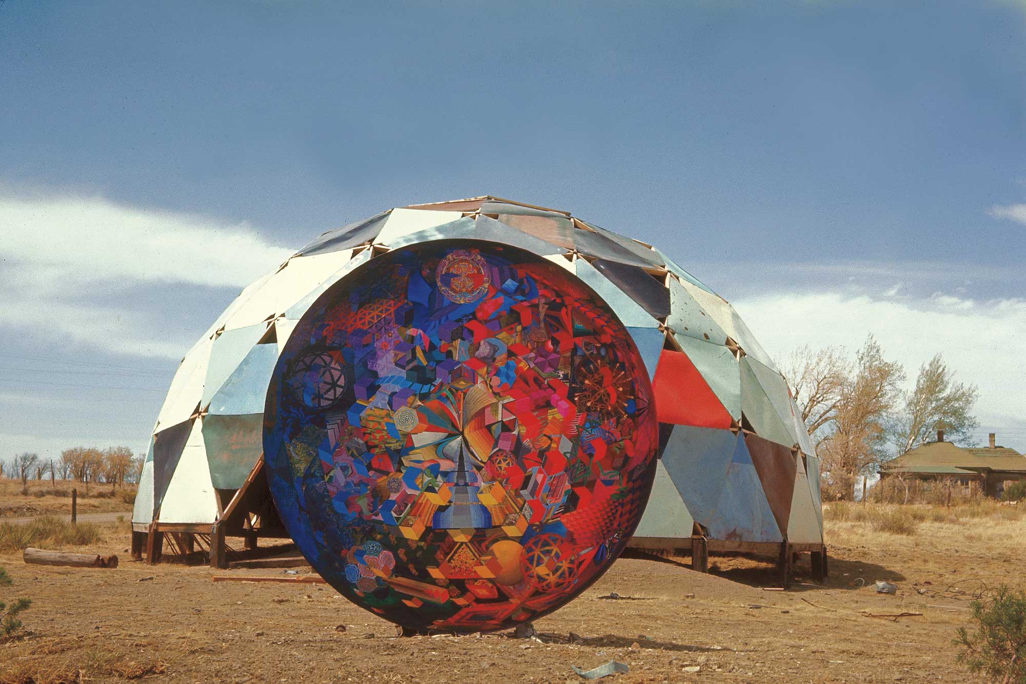 Drop City was a short-lived but legendary commune founded in 1965 near Trinidad, Colorado. Conceived as a “total living environment,” it became a prototype for experimental dwelling, anarchic media practice, and countercultural architecture. Its geodesic domes and zonohedra, improvised from salvaged car roofs and industrial scraps, shimmered on the plains as both sculpture and shelter.