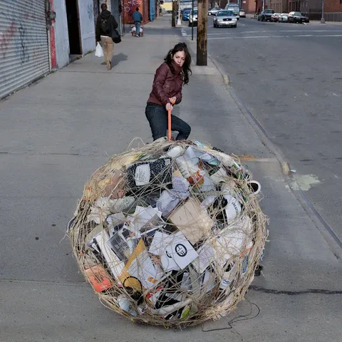 House and Universe was a major project by artist Mary Mattingly in which she bundled her personal possessions into enormous sculptural forms, then photographed and moved them through ports, sidewalks, and industrial landscapes.