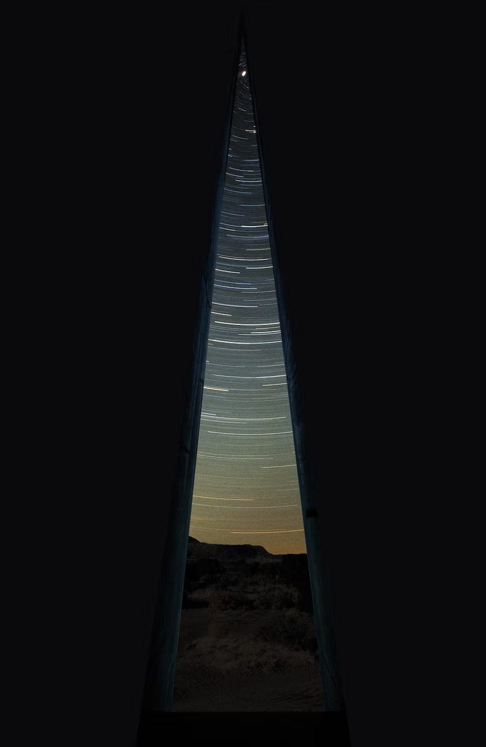 The work has unfolded slowly over decades, each chamber, tunnel, and stairway built with extraordinary mathematical care. Its precision is stunning: geometry and stone calibrated so that human movement through the structure traces the arcs of cosmic time. Unlike telescopes that mediate the sky through lenses, Star Axis invites direct inhabitation of astronomical patterns, situating the body within cycles that far exceed a lifetime.