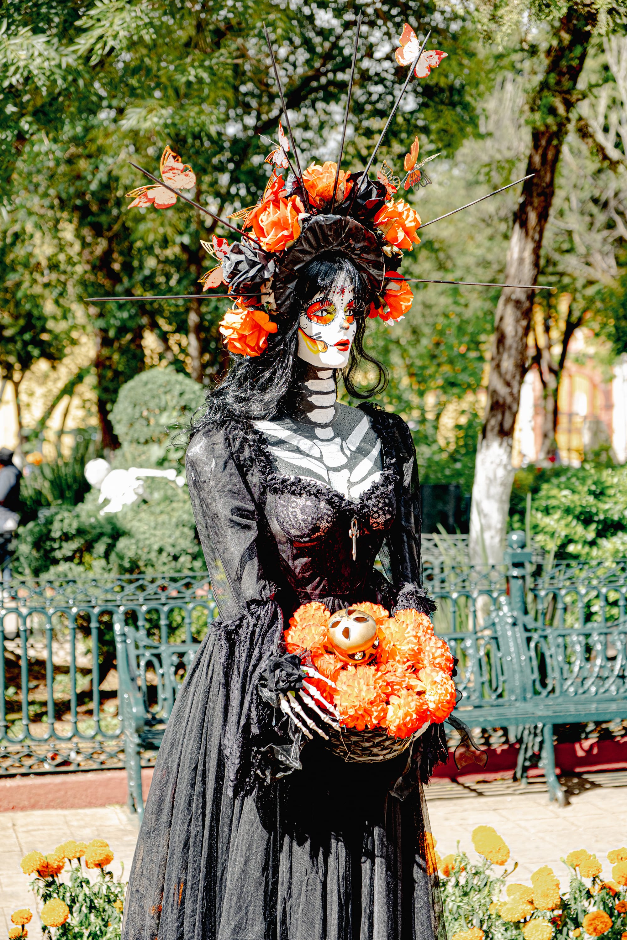 Floral Catrinas standing watch in the main plaza