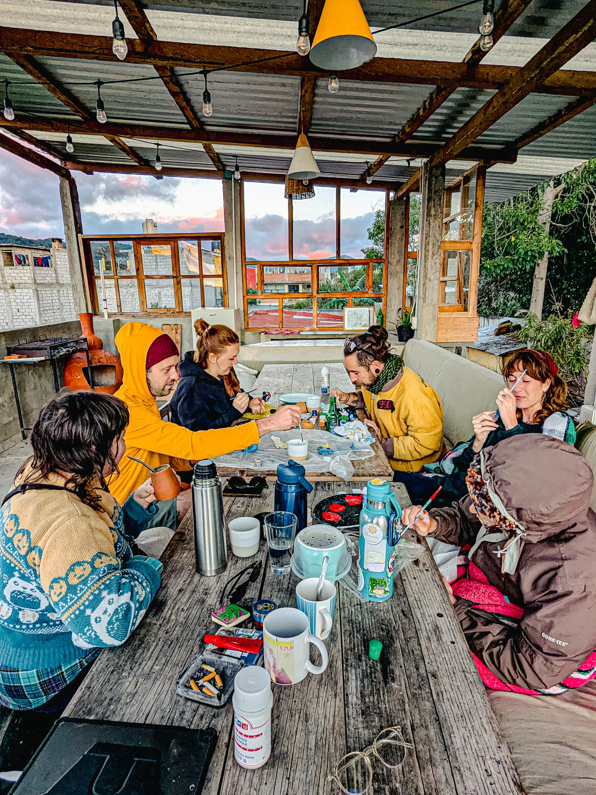The first activity took place several days before Día de Muertos. As a group, we made clay skulls by hand, shaping each one slowly and imperfectly before setting them aside to dry. Later, we painted them—some carefully, some playfully—turning the process into a quiet, communal way of easing into the days ahead.