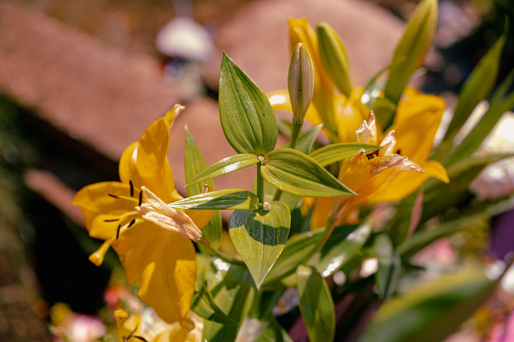 Flowers across the cemetery hillside