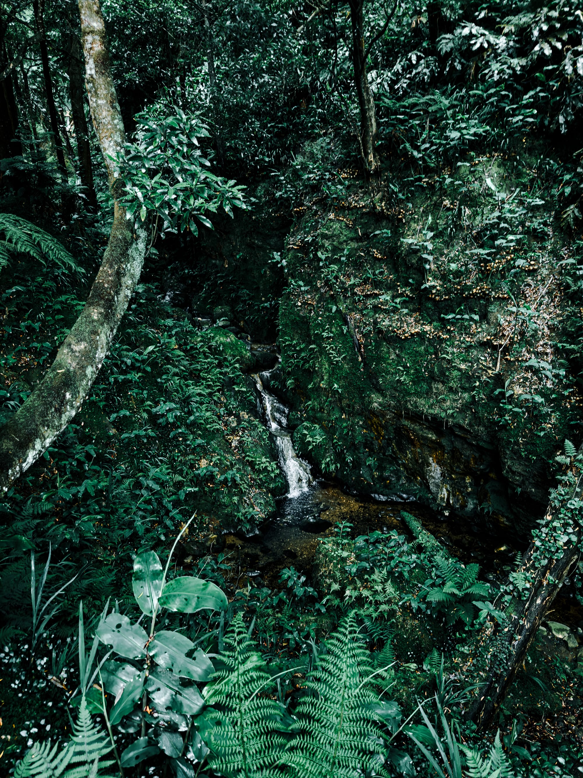 Moinho do Félix is a lush, looped hike through dense green—a waterfall pilgrimage. The path alternates between wide-open sky and enclosed forest, with staircases climbing up and down red clay earth. Morning glories tangle in the branches, and the waterfalls come one by one: some soft and hidden, others cascading with full force.