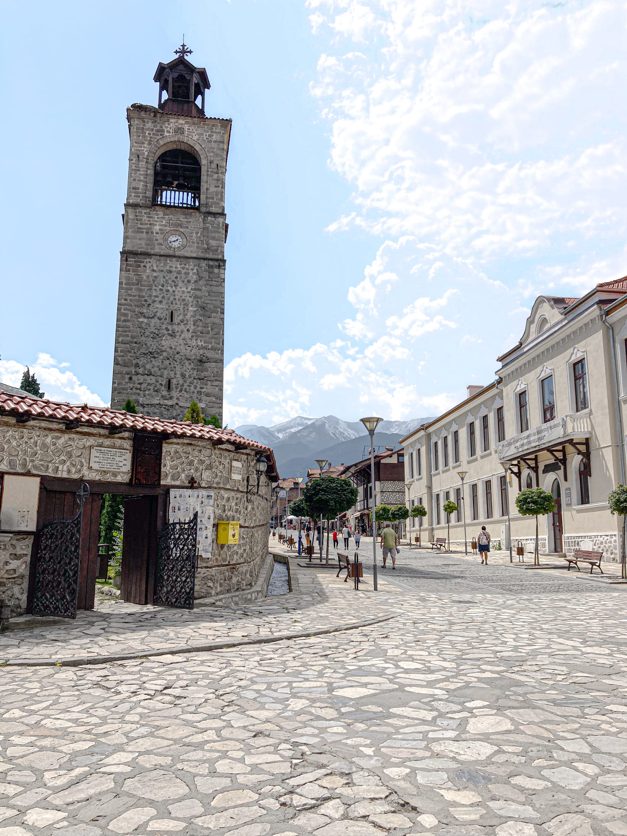Bansko’s Old Town holds the traces of its National Revival heritage—narrow lanes lined with stone houses, courtyards tucked behind heavy gates, and the white bell tower of the Holy Trinity Church rising above it all. Walking here feels slower, more atmospheric, as if the past is never far from view. You’ll find small museums, workshops, and murals alongside the everyday rhythm of locals going about their lives.