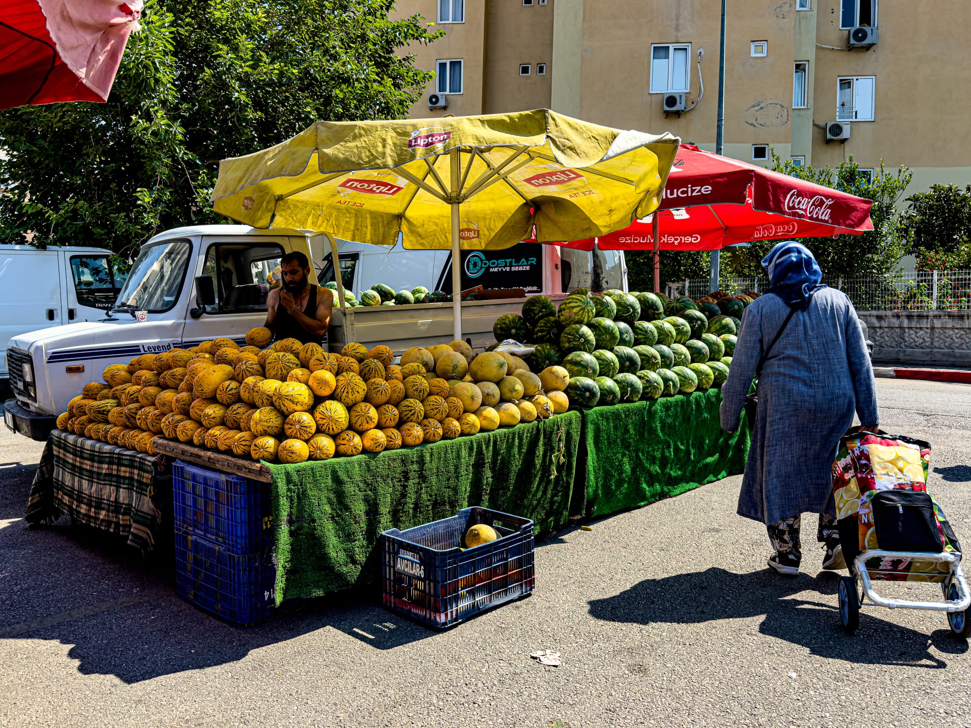 Locals shop for summer melons and fresh herbs, stocking up for the week at Antalya’s Friday Market