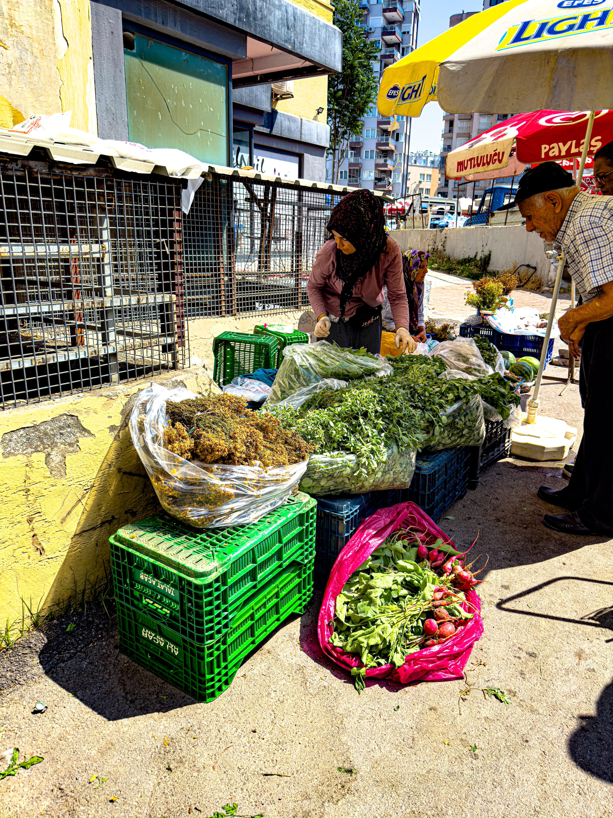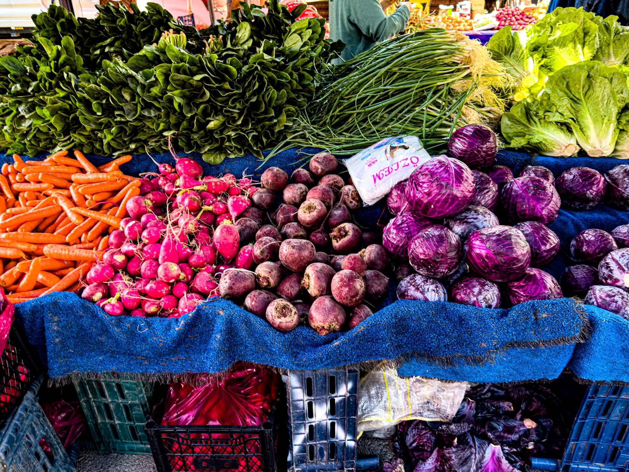 Vendors call out their offerings in rhythmic chants, and you’ll hear Turkish phrases bouncing through the air alongside the sound of bags rustling, children playing, and small talk over produce. Most stalls specialize in just a few items: one will have only tomatoes, another stacks of leafy greens, another a dazzling array of olives in plastic tubs. There are stalls for dried fruits and nuts, for pulses and grains, for herbs tied into bundles or displayed loose in bins.