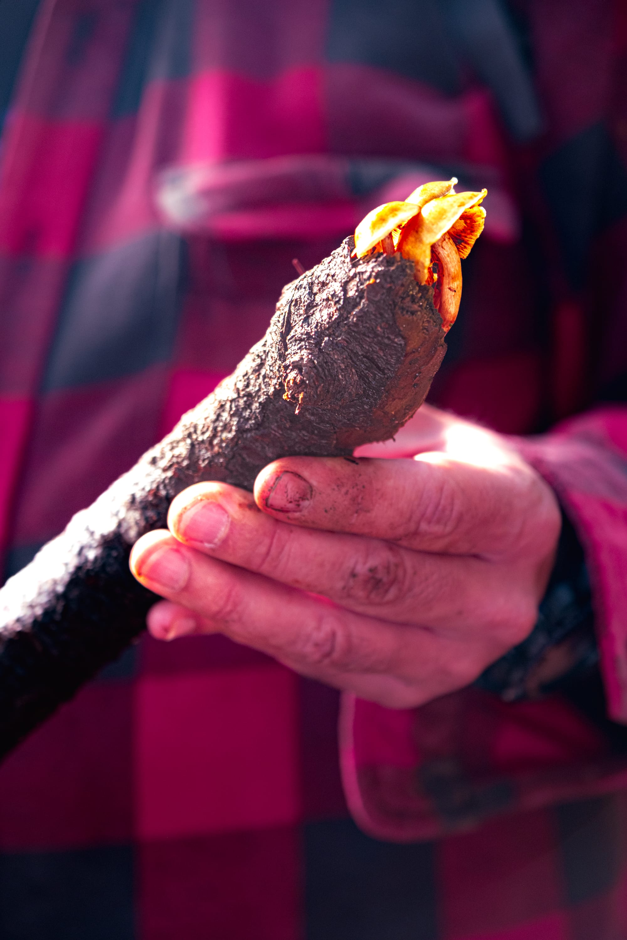 For a moment, we all crouched around the log, watching condensation form on the soft surface of the wood, noticing how the threads of fungi gleamed faintly in the dim light.