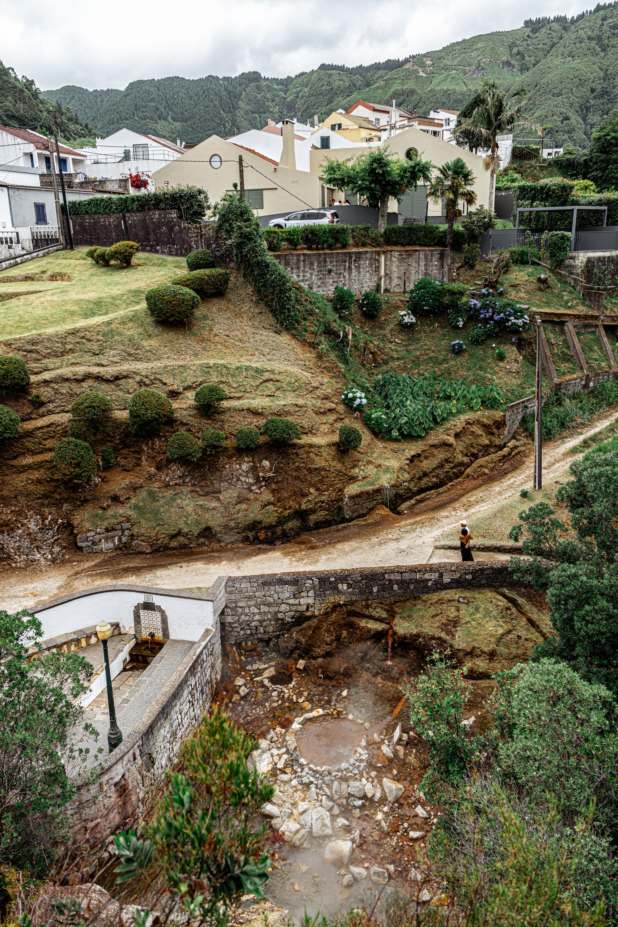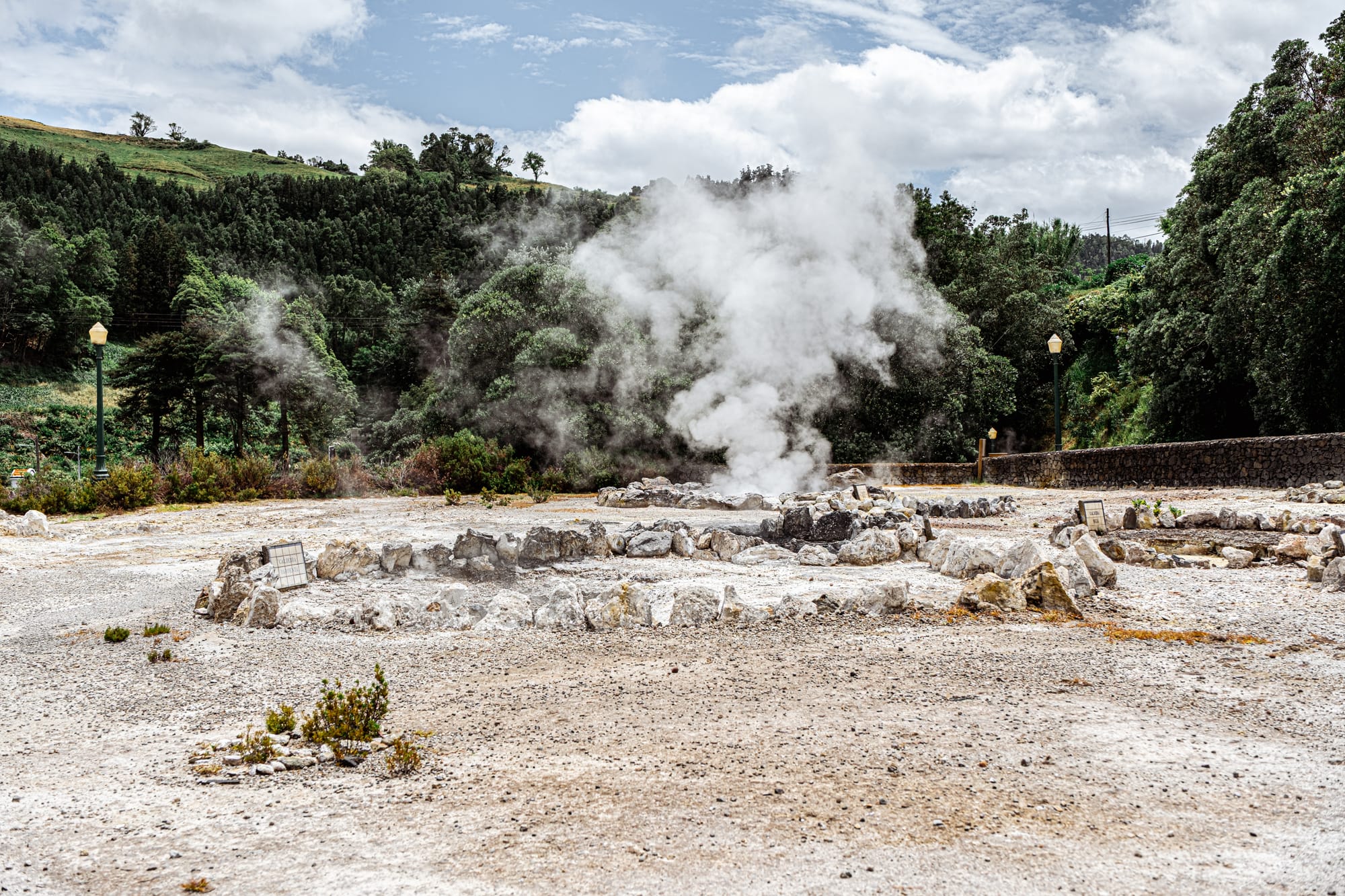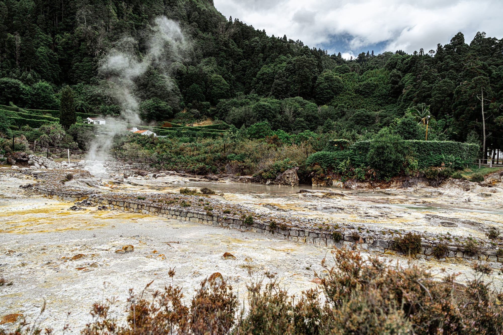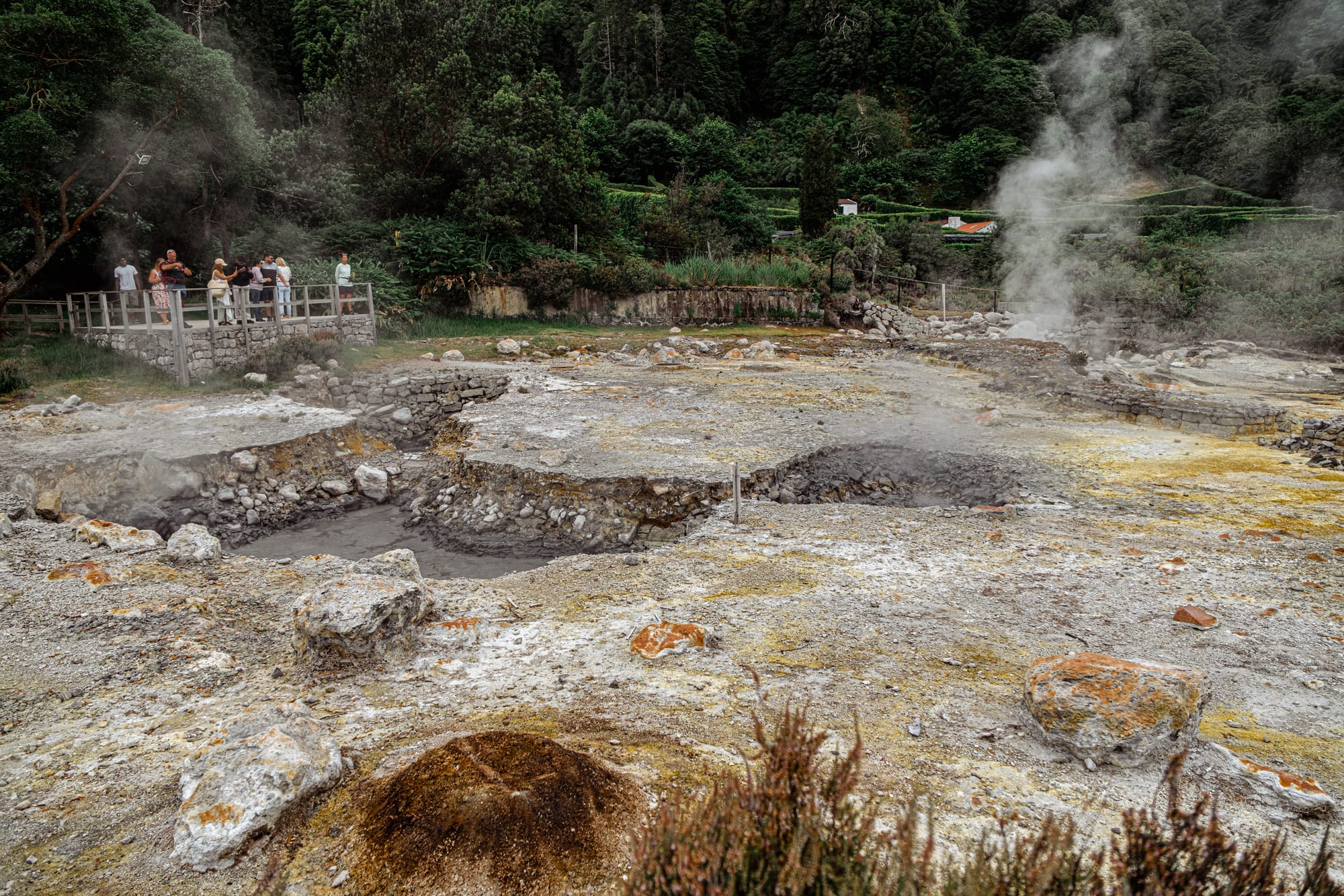Unlike many geothermal parks that feel sealed-off or sterilized for tourism, Caldeiras das Furnas still operates with everyday utility. Those low stone ovens with metal lids? They're in active use.