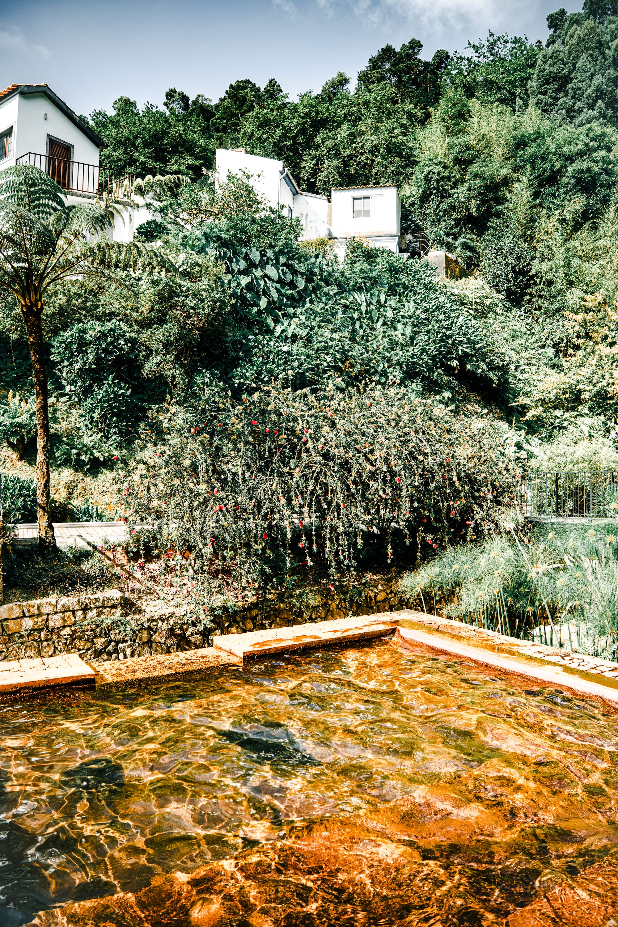 Lush thermal oasis at Poça da Dona Beija, where gardens meet sulfur-rich pools