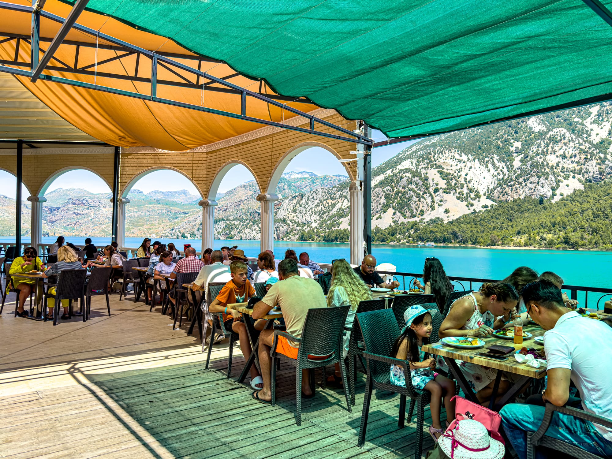 It takes a couple of hours to reach the canyon from Antalya, but the drive winds through scenic countryside—a procession of citrus groves, roadside markets, and changing terrain. When you arrive at the pier, the change in pace is instant. The water is glassy, impossibly turquoise, and the only sounds are bird calls, distant chatter, and the gentle lapping of waves against the hull.