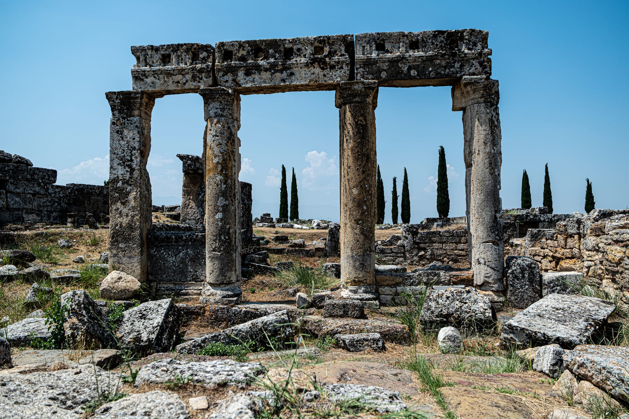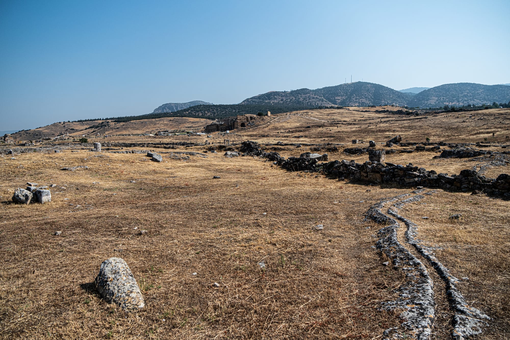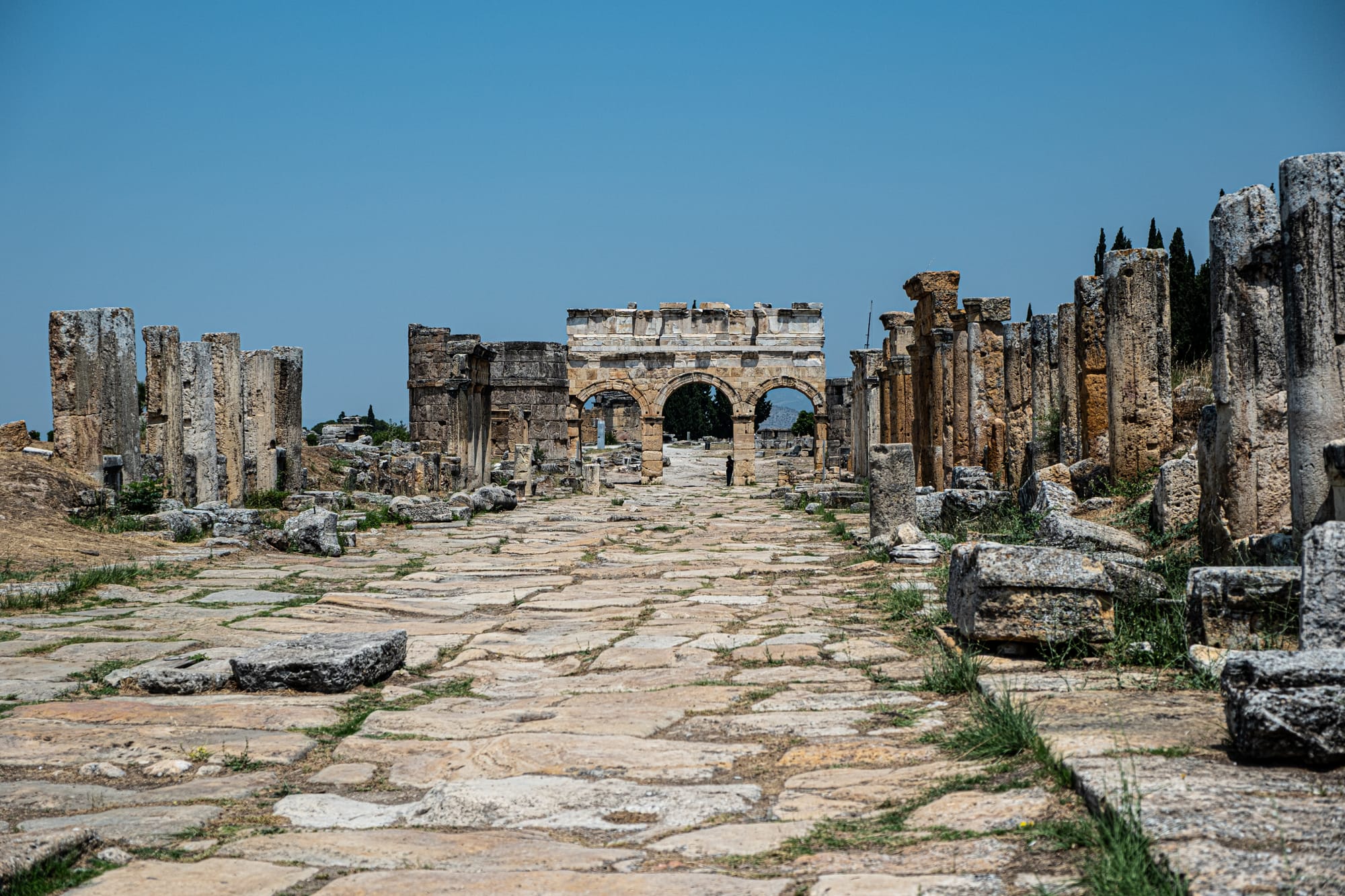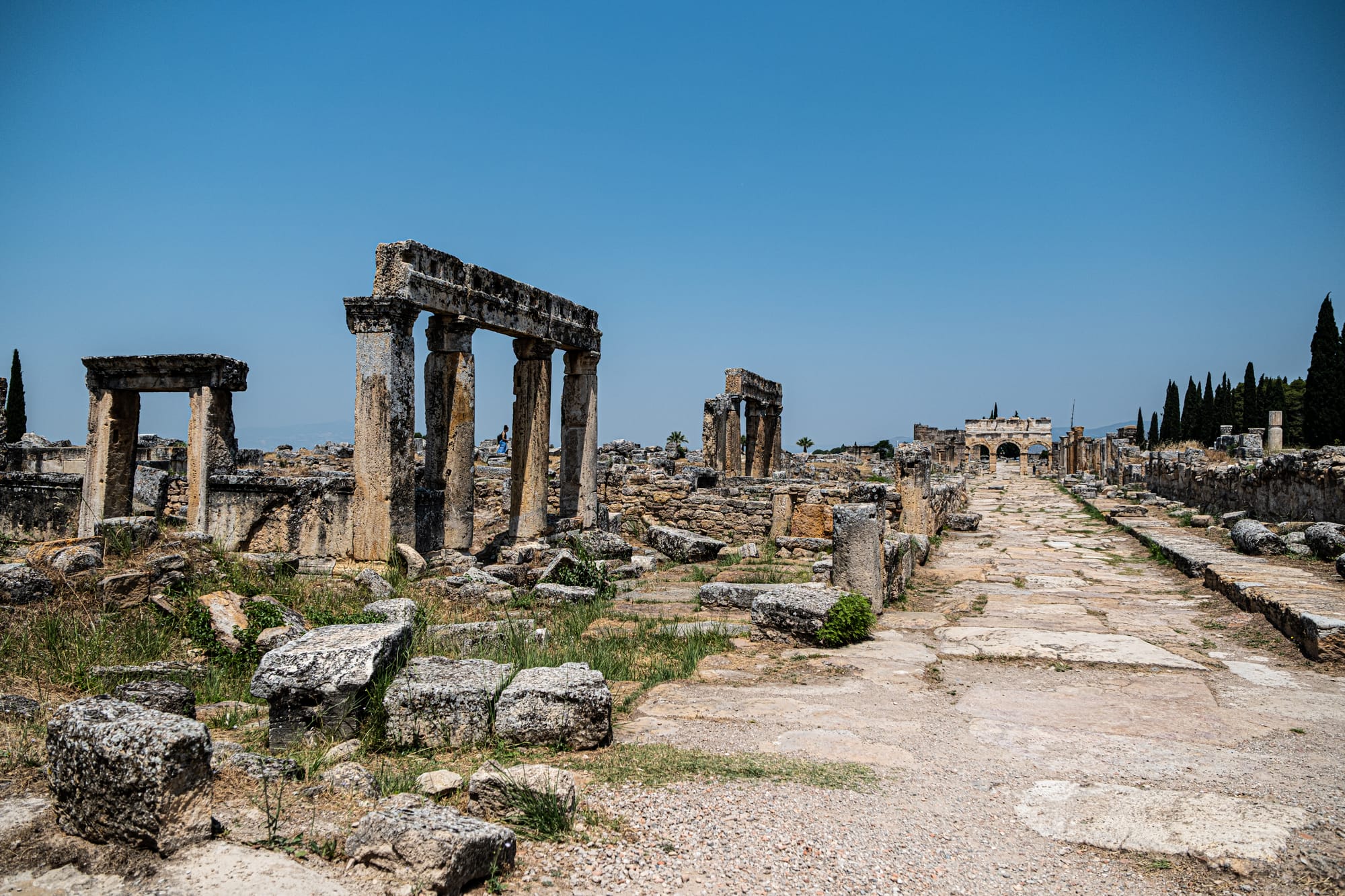 Ancient streets and crumbling columns trace the cityscape of Hierapolis, once a thriving Greco-Roman spa town