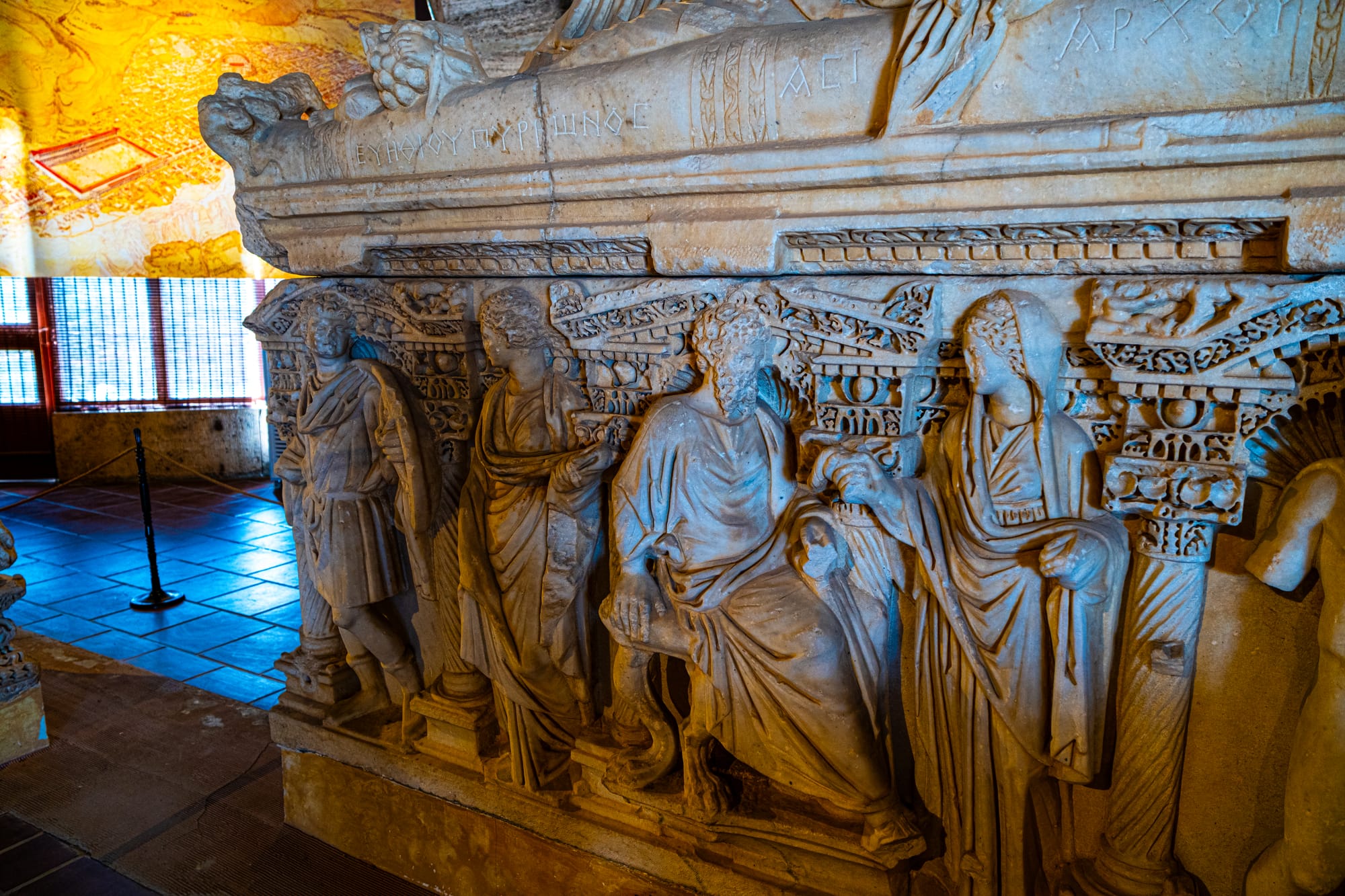 Housed inside a former Roman bath, the small museum on site is dense with expression. You will find intricately carved sarcophagi featuring scenes of battles, banquets, and abductions.