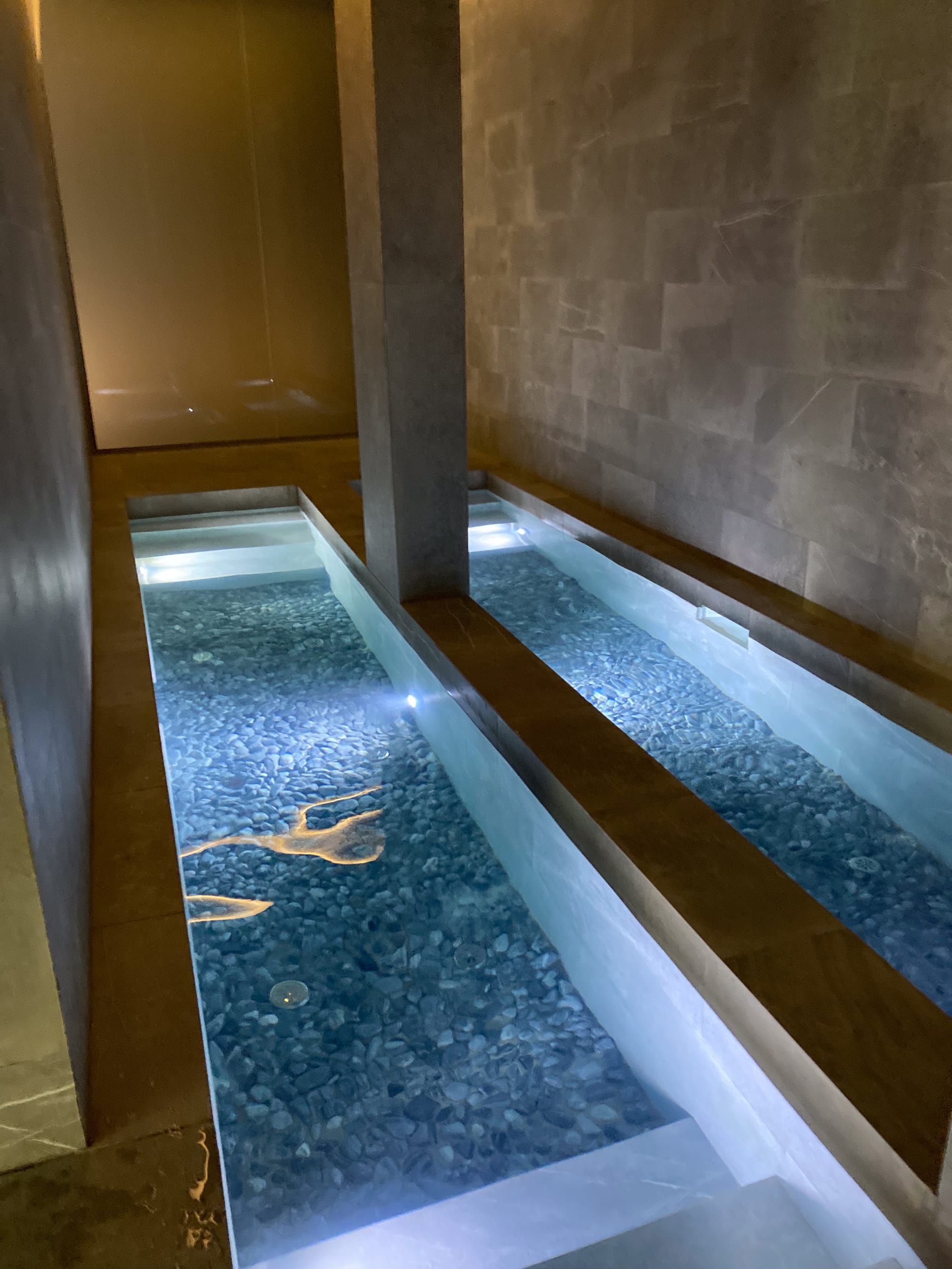 The pools are only part of the rhythm. Much of a day at Pulse is spent moving between saunas and steam rooms. Each has its own character: dry heat that slowly builds until it’s nearly unbearable, or dense steam that settles heavily on the skin and lungs. The design is spacious enough that you don’t feel rushed or crowded, even on busier days.