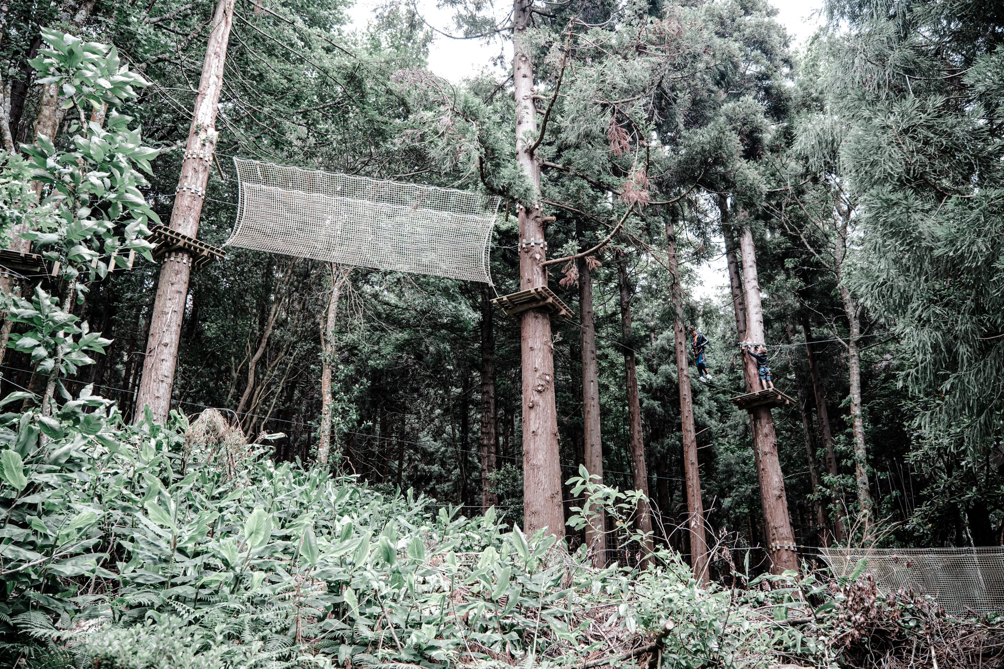 Then the trees grow taller and the ropes appear—Azores Treetop Park. Nets, ladders, cables drawn between trunks.