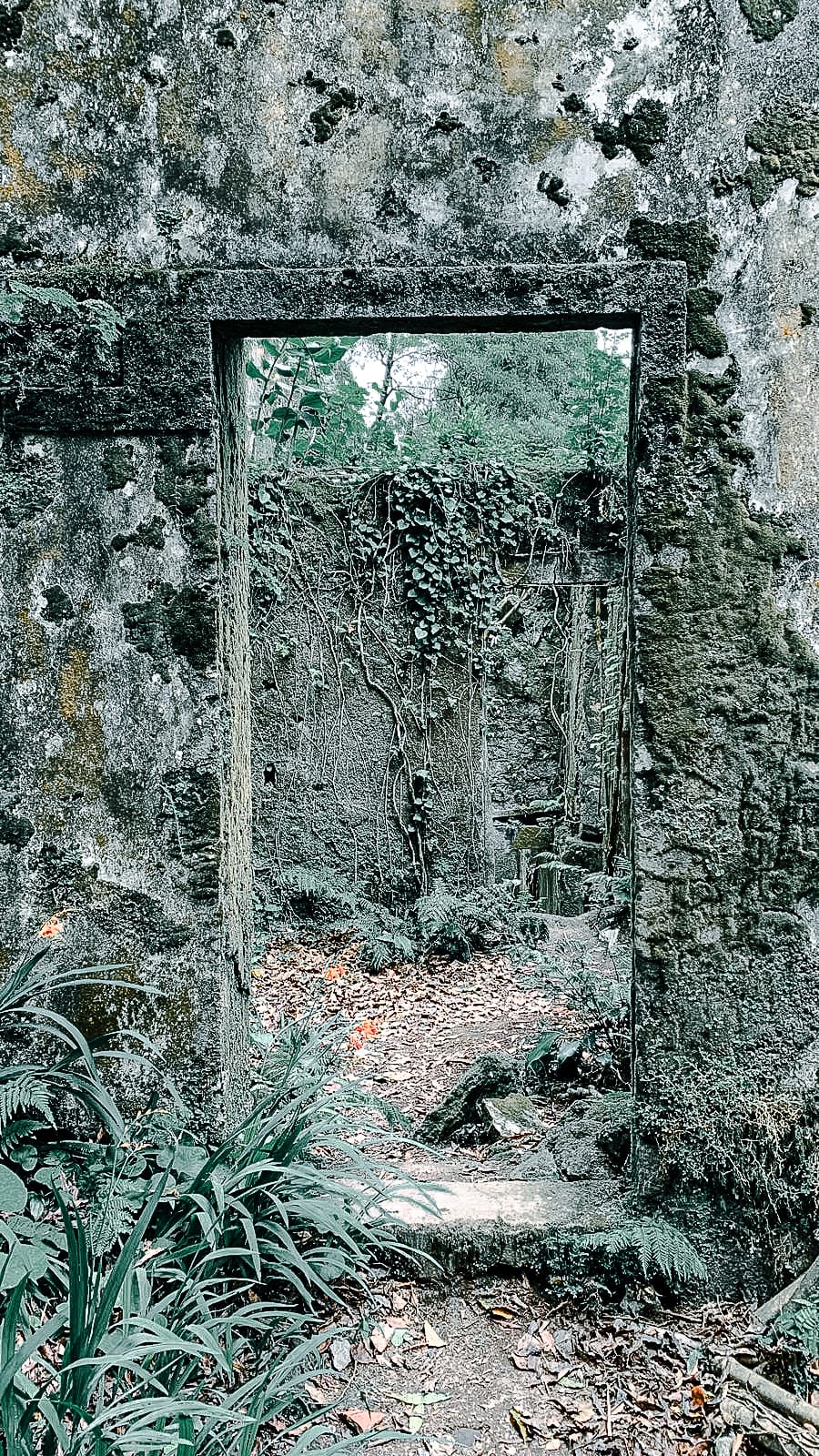 Quiet trails through Parque da Grená lead past dense forest, spring-fed pools, and moss-covered ruins