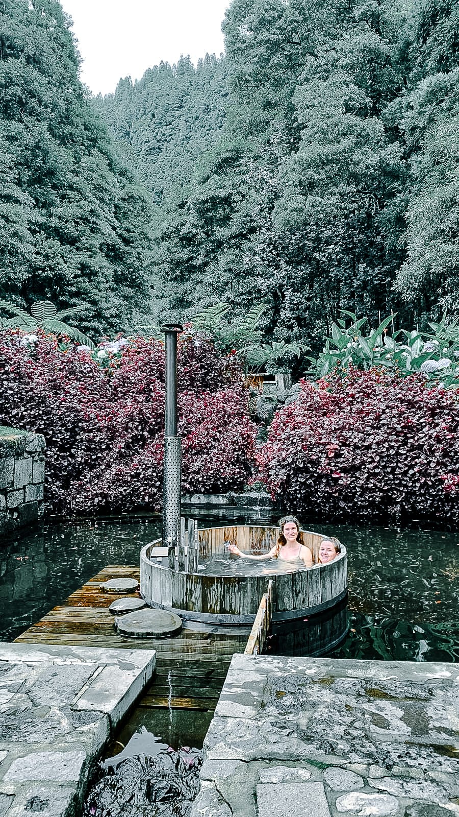 Lakeside geothermal fields and pastel Portuguese architecture offer striking contrast to the forested crater walls