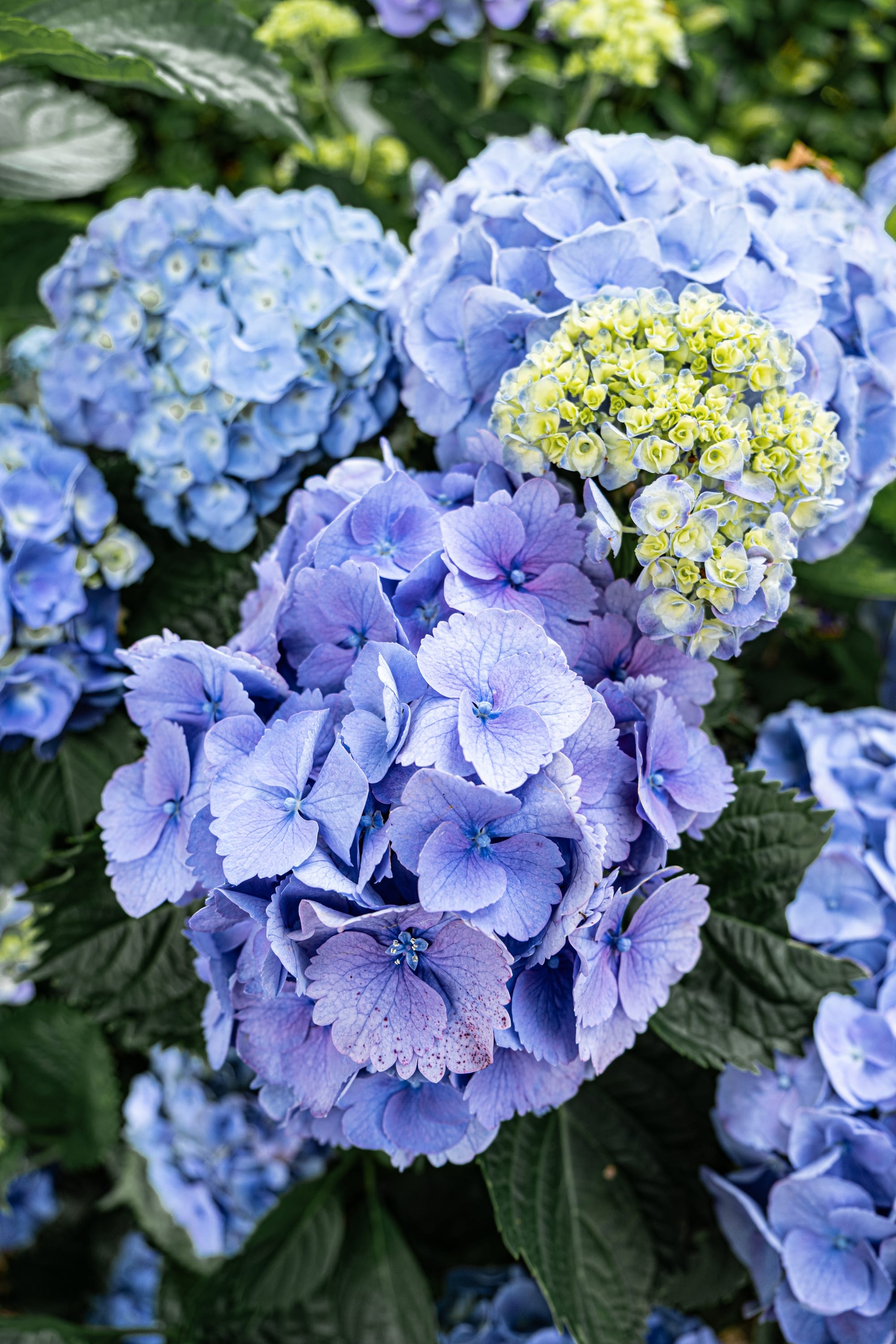Azorean blooms in late summer light—hydrangeas in every hue and a lone wildflower radiant against glossy green