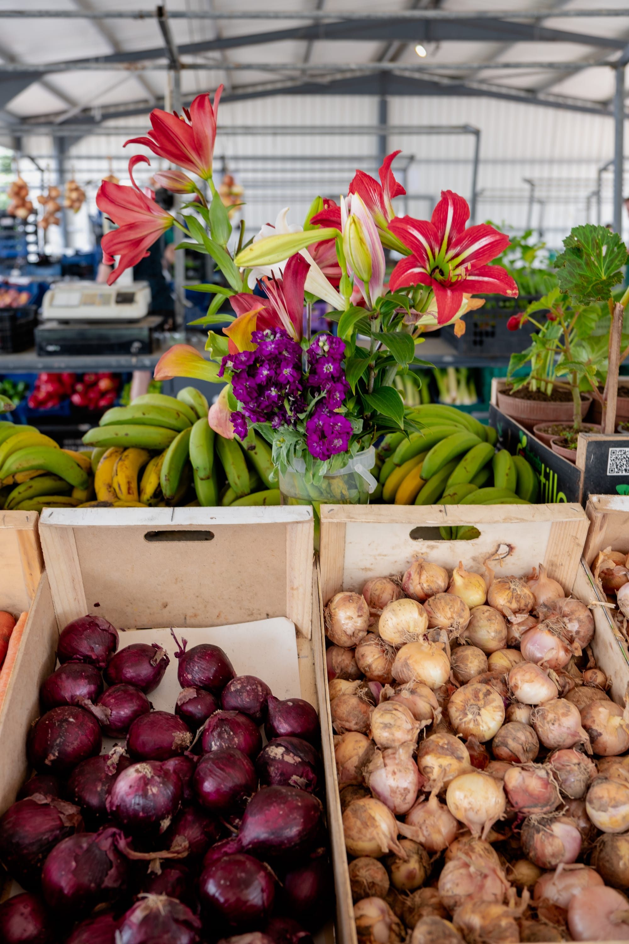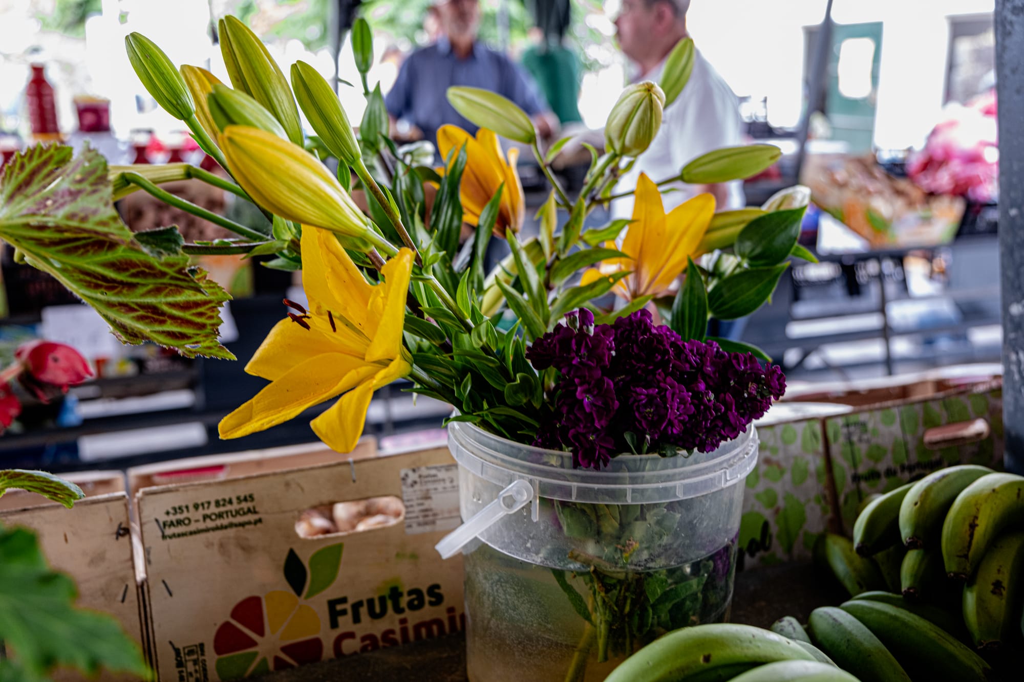 Not just food—fresh flowers are part of the weekly rhythm at Mercado Agrícola de Santana