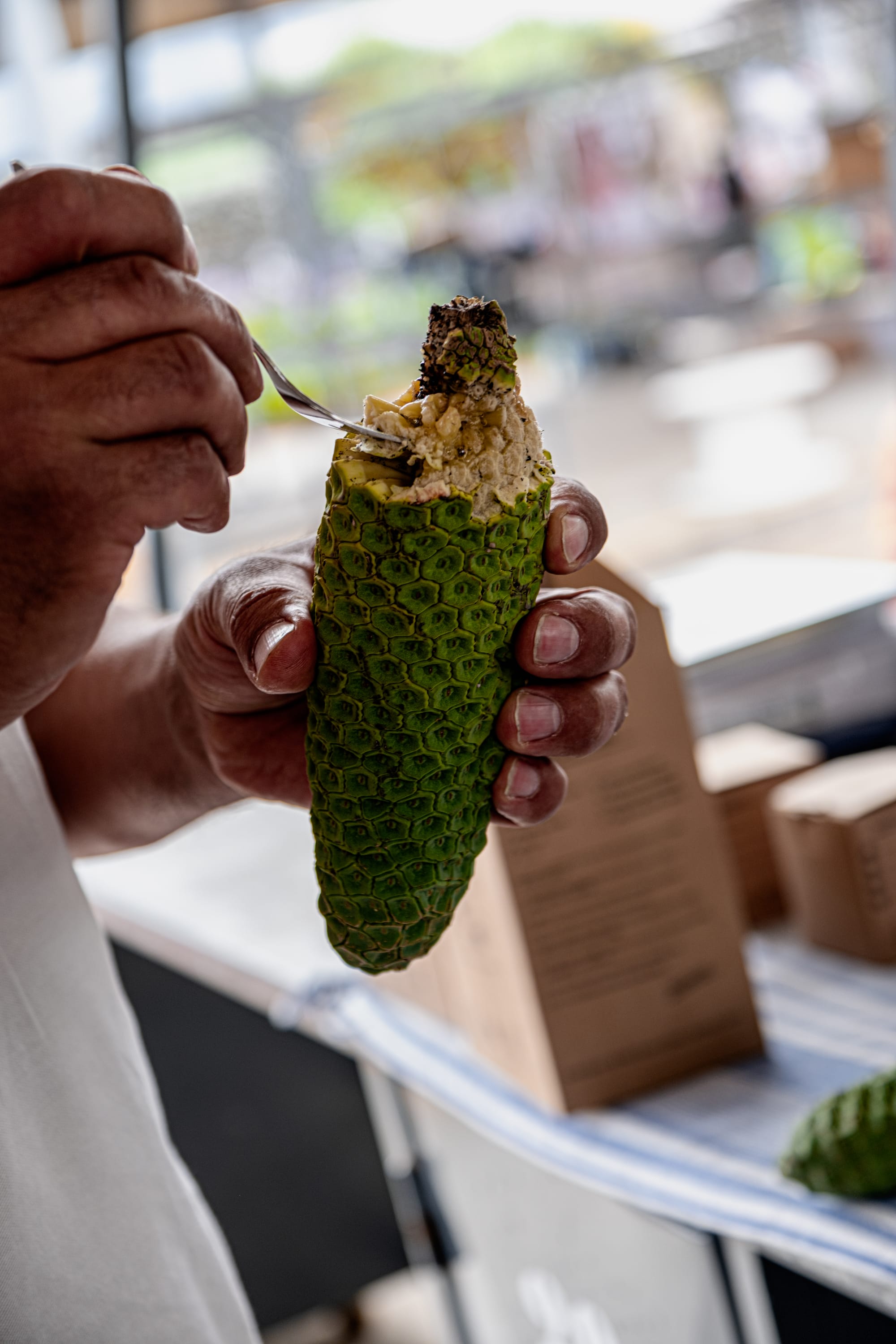 One vendor was selling Monstera deliciosa fruit, which none of us had tried before. It was tangy and strange.