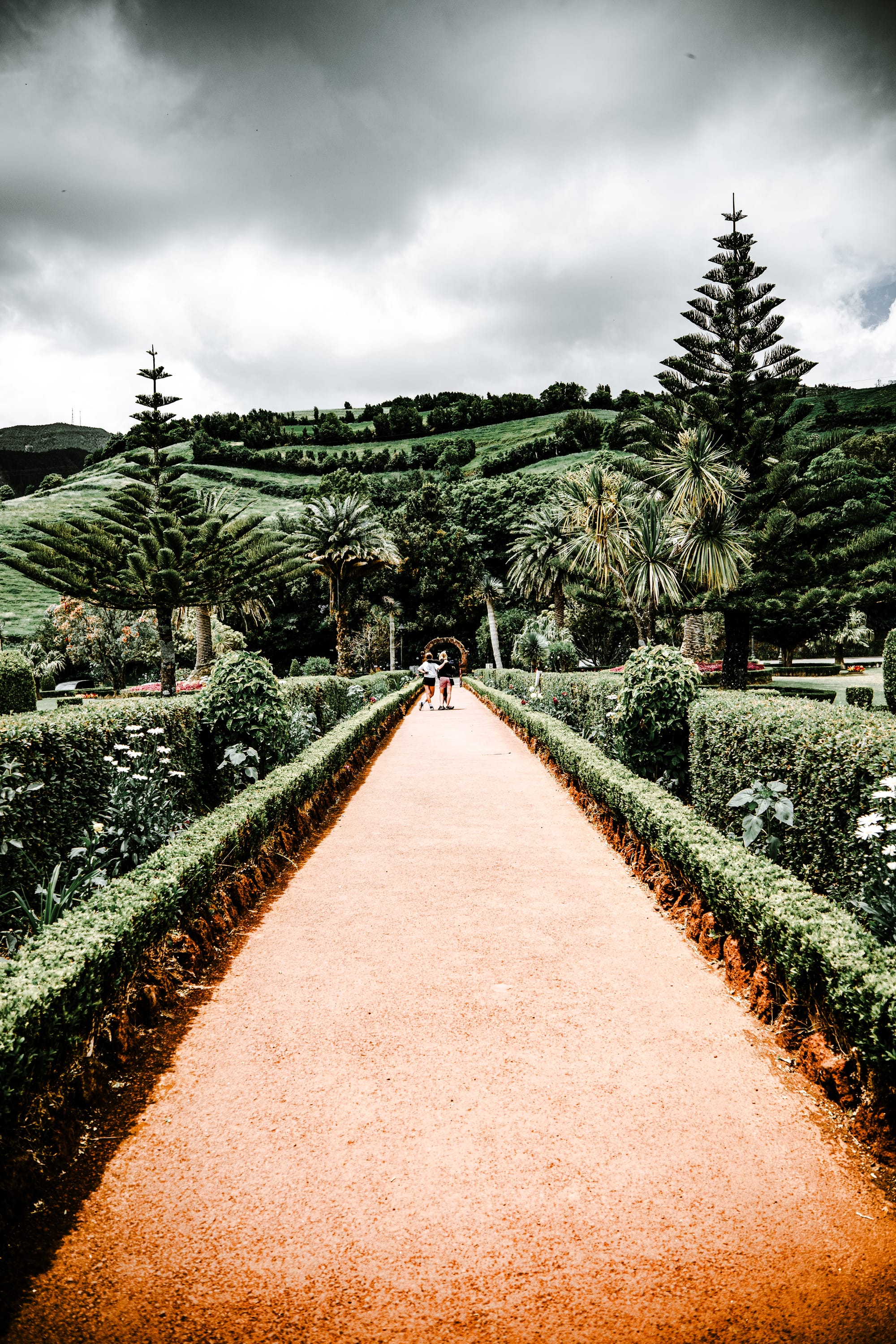 Set on the northeast coast of São Miguel, Miradouro da Ponta do Sossego is not just a viewpoint—it’s a full garden suspended above the sea. The approach feels ceremonial: a long, red earth pathway lined with trimmed hedges and towering conifers, leading you gently toward the edge. But the further you walk, the more the landscape opens—first to flowerbeds, then to terraced lawns, then to cliffs and Atlantic horizon.