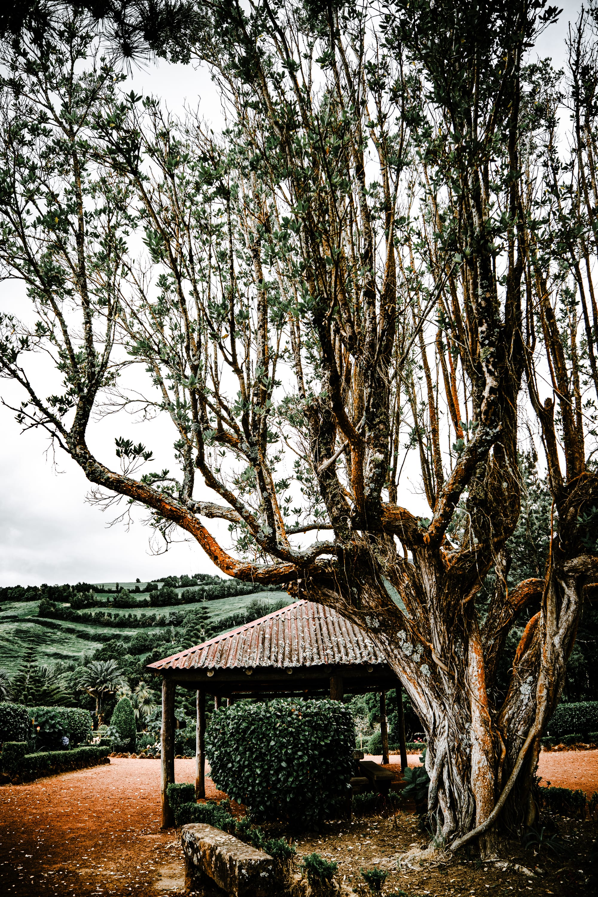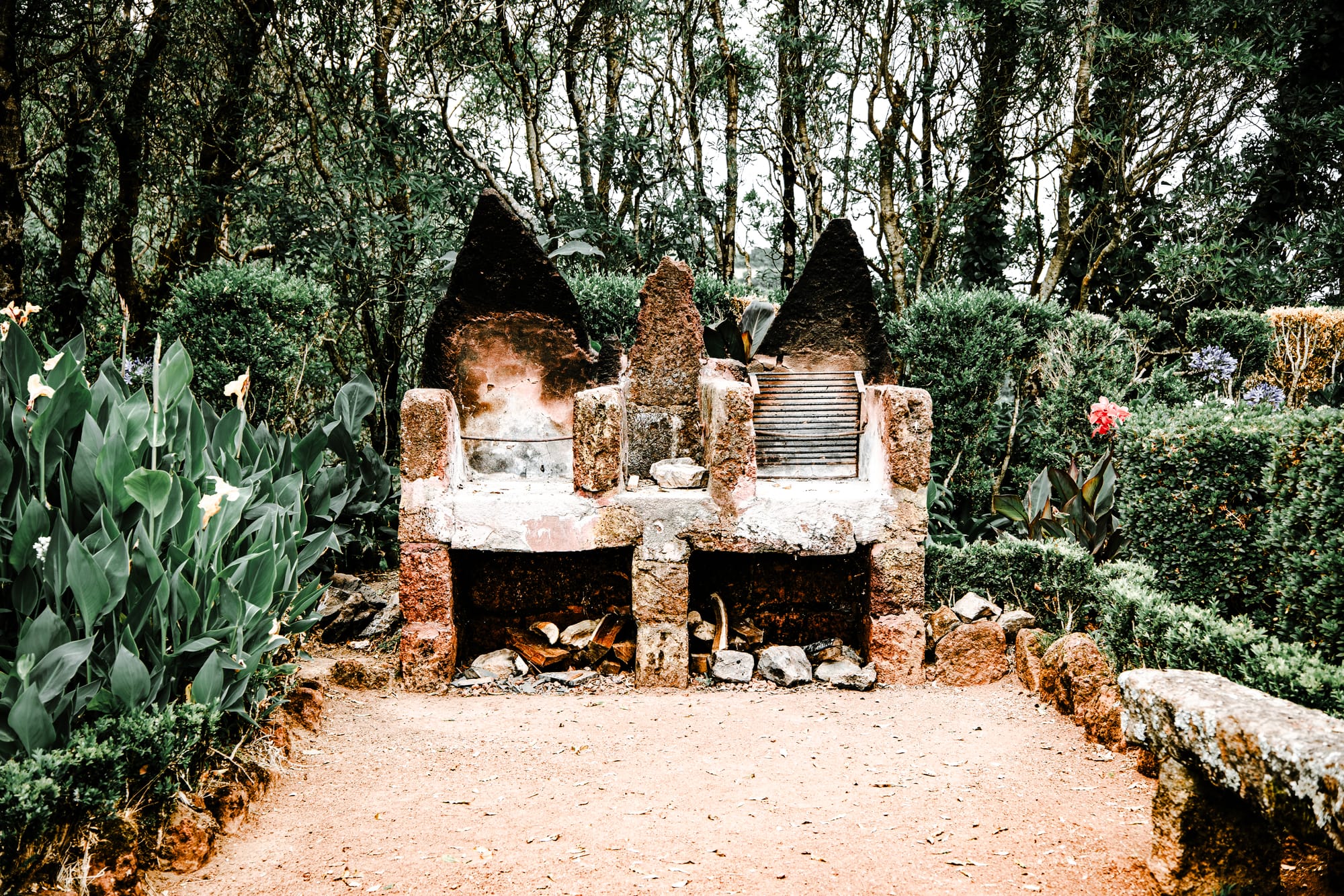 Trees twist upward, creating shaded alcoves where you’ll find picnic tables, wooden benches, and the occasional tiled fountain or barbecue pit.
