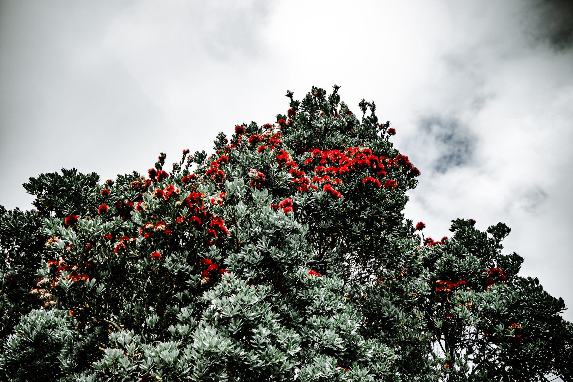 Bright florals scattered along the edge of Ponta do Sossego, from pōhutukawa to poppy-like blooms