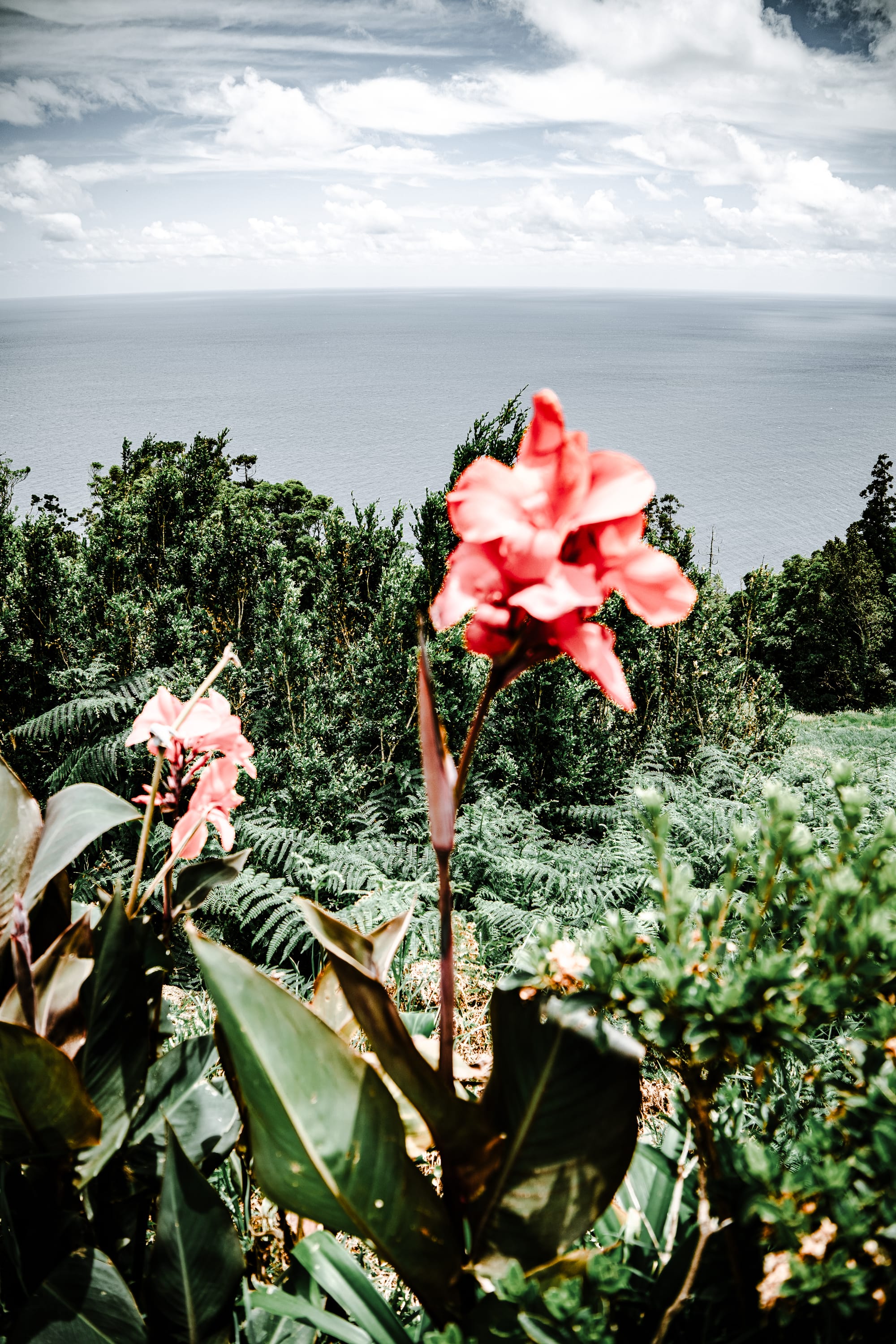 The view is sharp and cinematic, but the surrounding ecology is equally compelling. We passed mossy banks, pitcher plants, low-set hydrangeas, and red volcanic soil along the trail. At the top, the wind picks up—strong enough to tousle your hair and remind you just how exposed this point is.