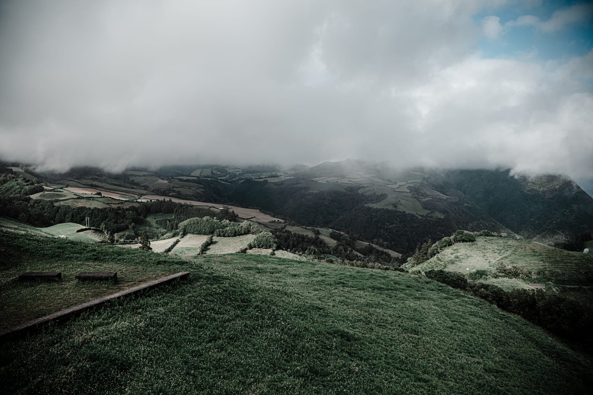 This miradouro doesn’t announce itself. Just a quiet curve in the road, a short stone path, and a low wall with one of the island’s best vantage points. When we stopped here, the fog was lifting just enough to reveal shifting fields, coastal cliffs, and the edge of something we couldn't quite name.