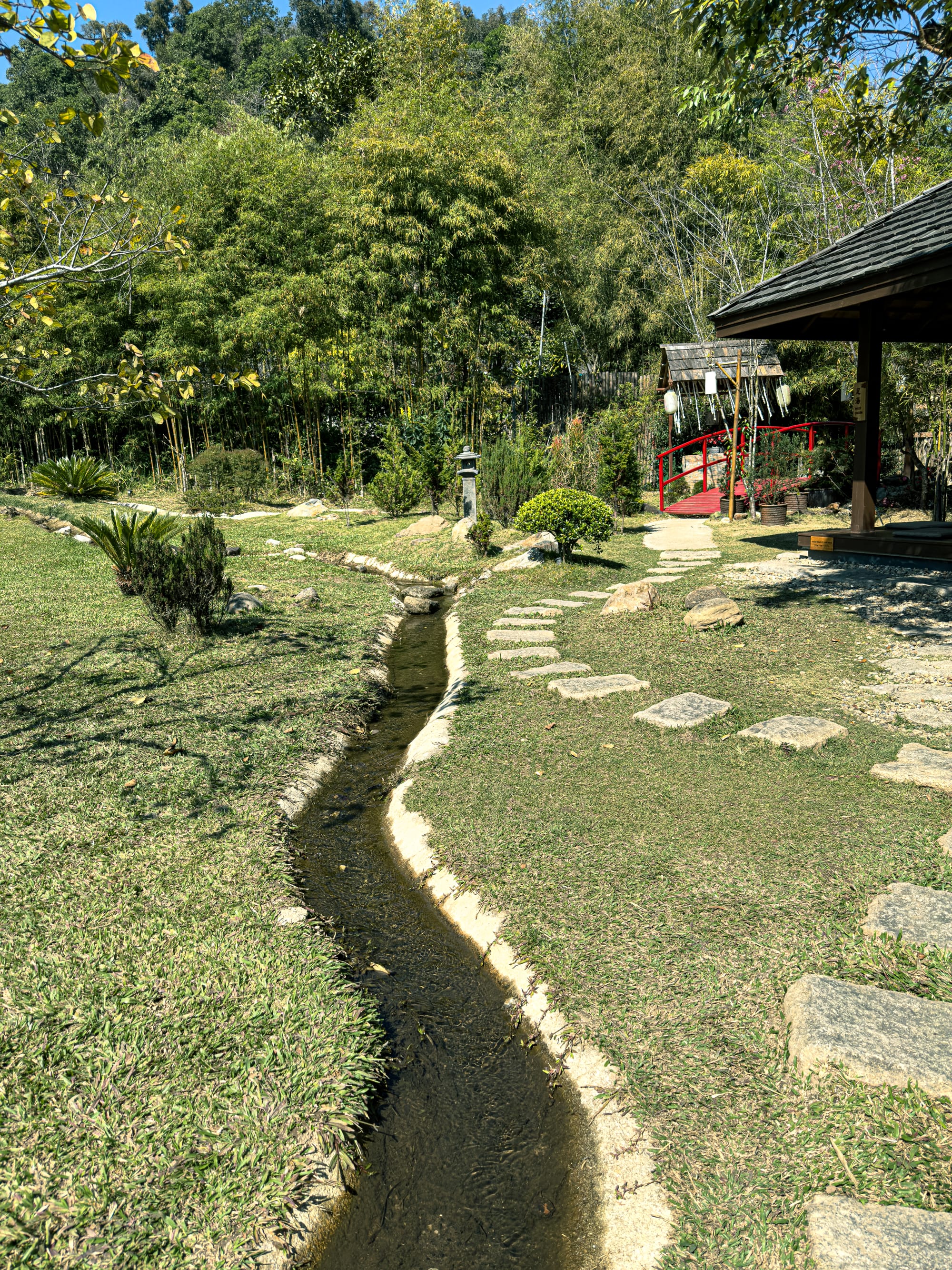 Wandering the gardens feels like stepping into a Japanese ryokan—yet with a distinctly Thai backdrop. You’ll find mountain ridges in the distance, terraced farmland on nearby slopes, and a refreshing coolness in the air that makes the experience especially inviting compared to the heat of Chiang Mai city.