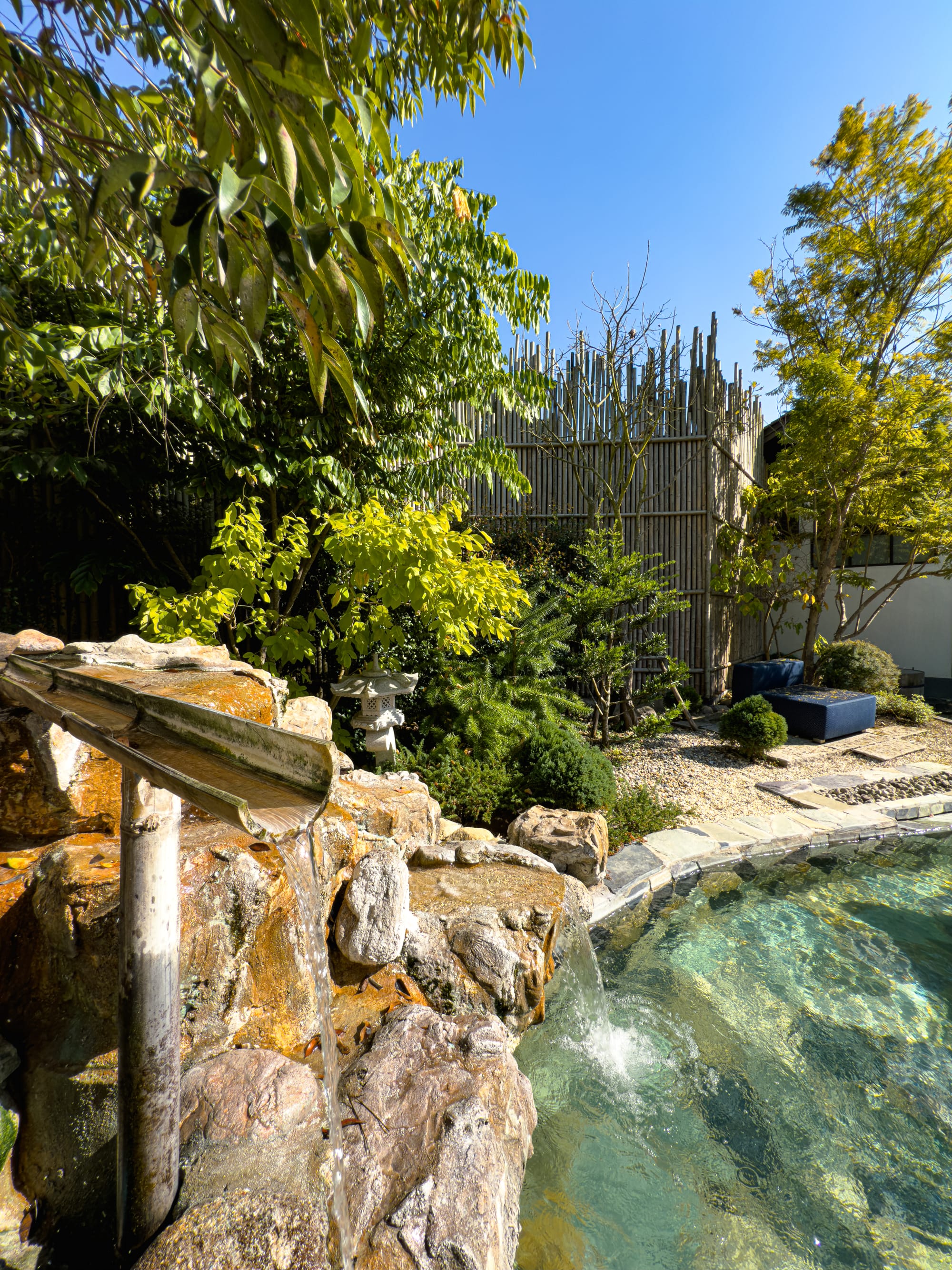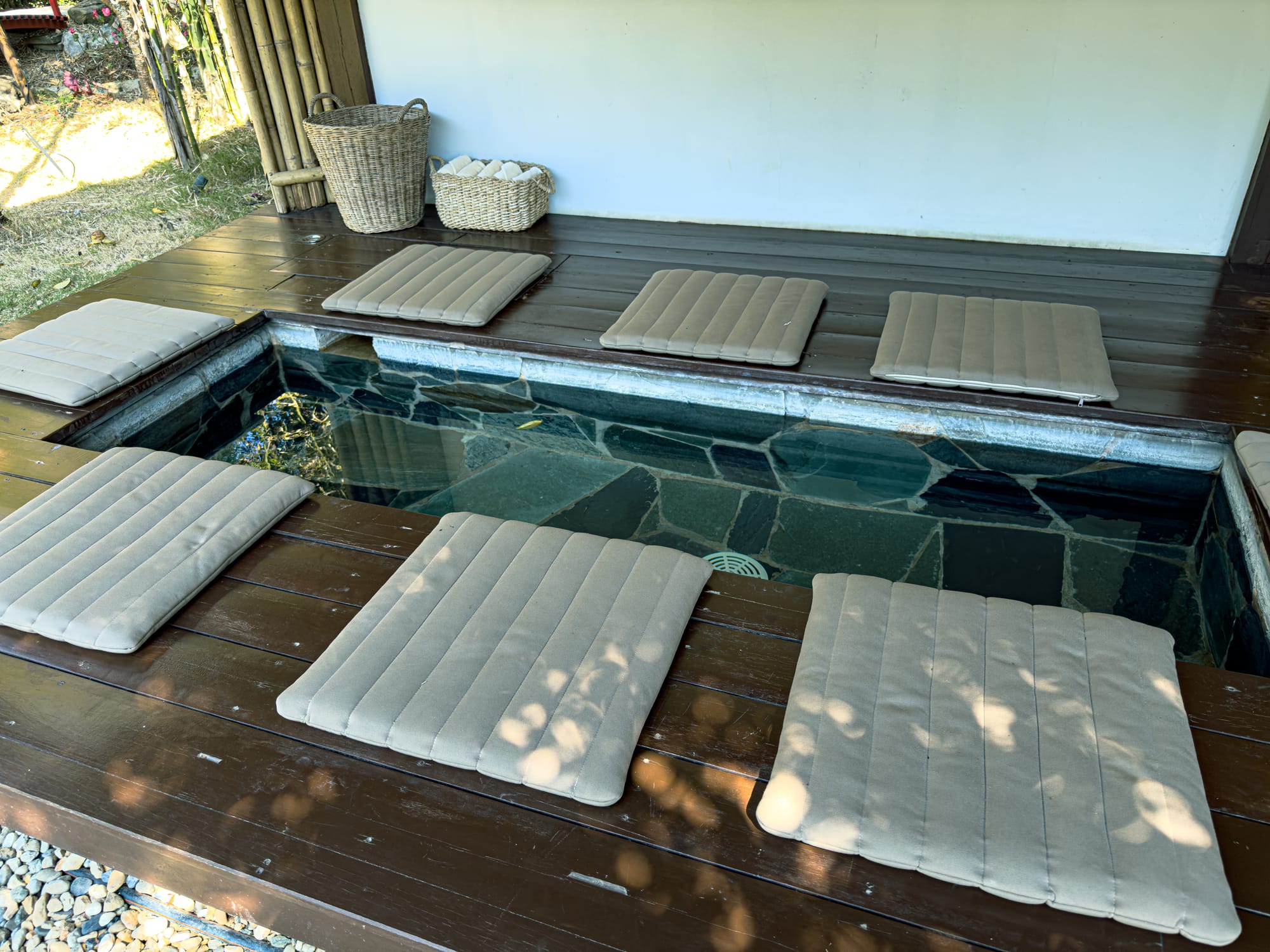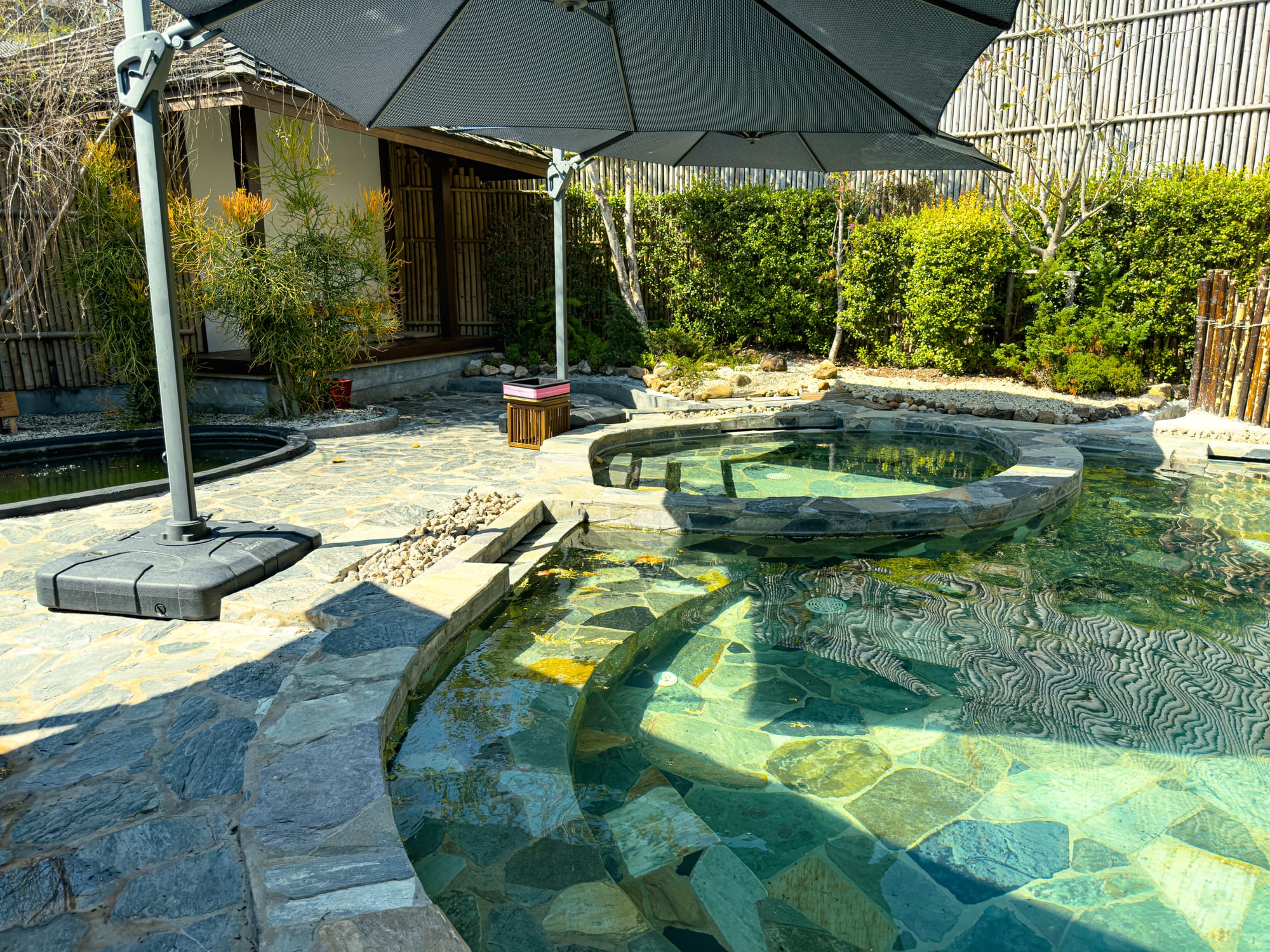 The layout included multiple baths—one warm, one hot, and one cold plunge—set within a private walled garden that balanced seclusion with a sense of openness. Bamboo fencing, smooth stones, and trickling water features completed the atmosphere. The water itself is sourced from mineral-rich underground springs, offering many of the same benefits as traditional Japanese onsens: muscle relaxation, improved circulation, and deep stress relief.