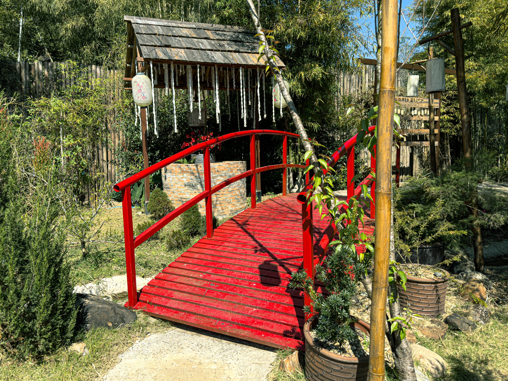 The first thing that strikes you about Onsen at Moncham is the landscape. The grounds are beautifully maintained, blending Japanese aesthetics with Mae Rim’s mountainous setting. Manicured gardens, stone pathways, and wooden bridges create a tranquil environment that encourages slow exploration. There are ponds reflecting the surrounding greenery, bamboo fences that frame hidden corners, and striking splashes of color from seasonal flowers.