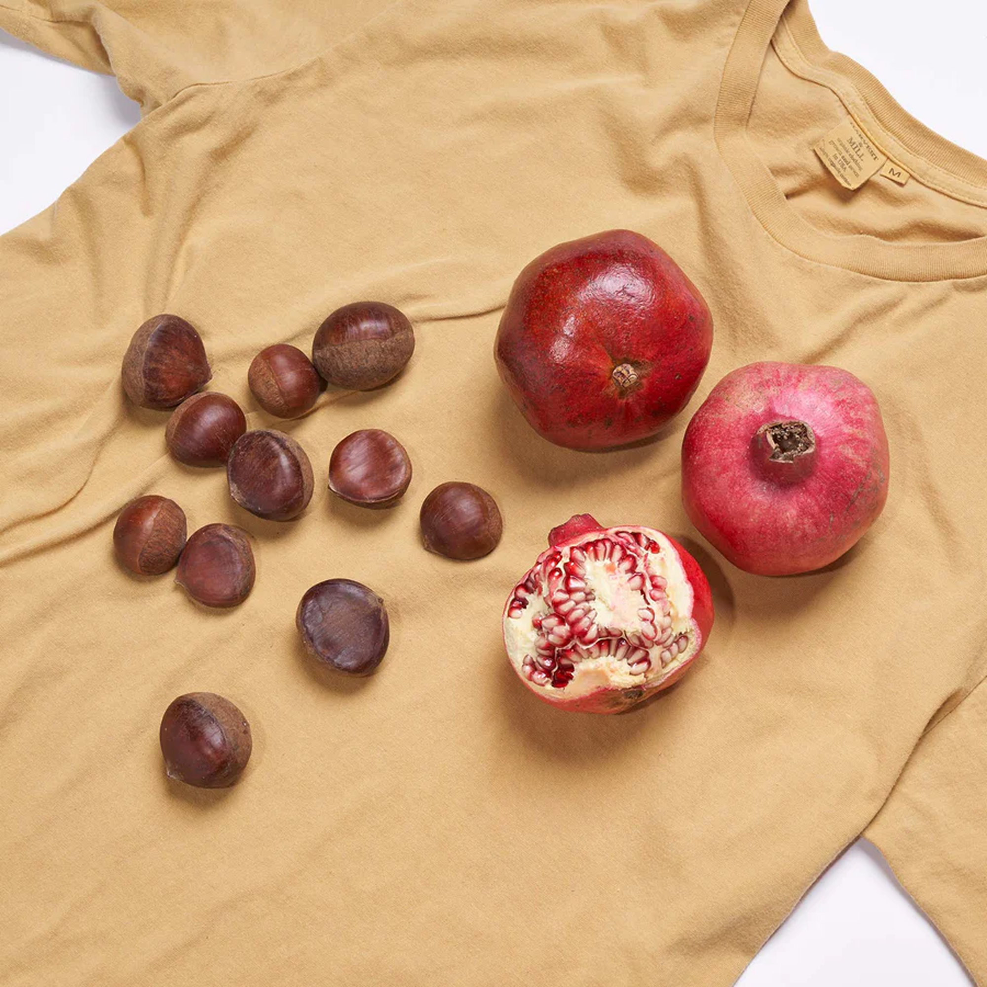 Naturally dyed in the USA using pomegranate and chestnut. Modern men’s crew. Made to be your daily wearer. Built with 4.3 ounce 100% organic cotton jersey, this fabric is the perfect weight and ideal for tee shirts. Soft, flexible feel on the body with rib collar for a clean look. Fits true to size. Pre-shrunk during the dyeing process.