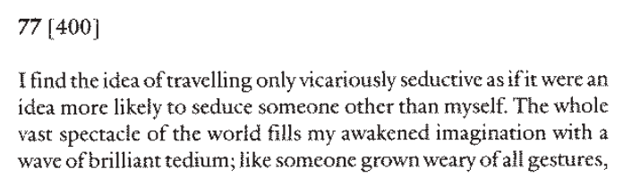 "Only extreme feebleness of imagination can justify anyone needing to travel in order to feel."