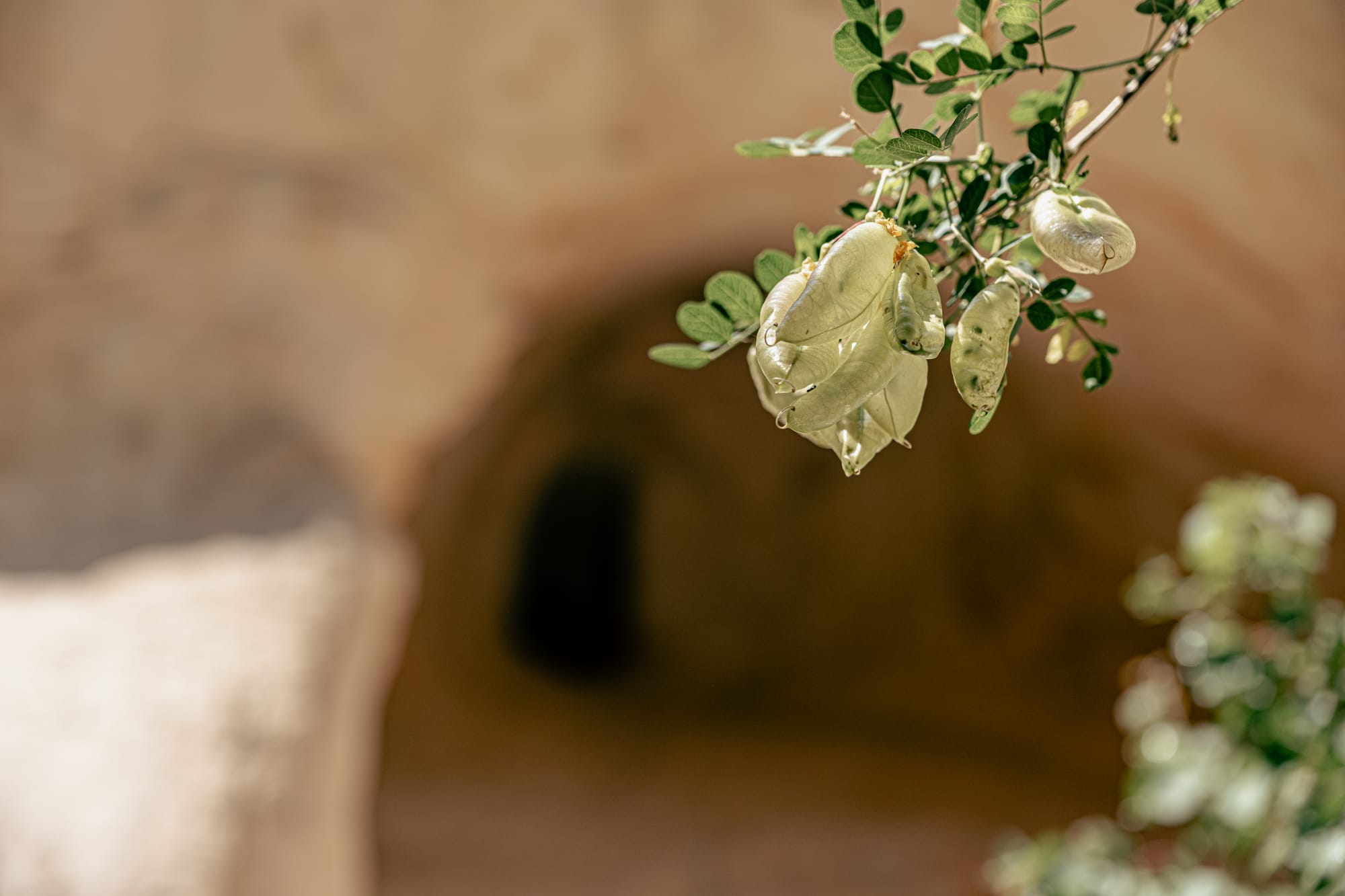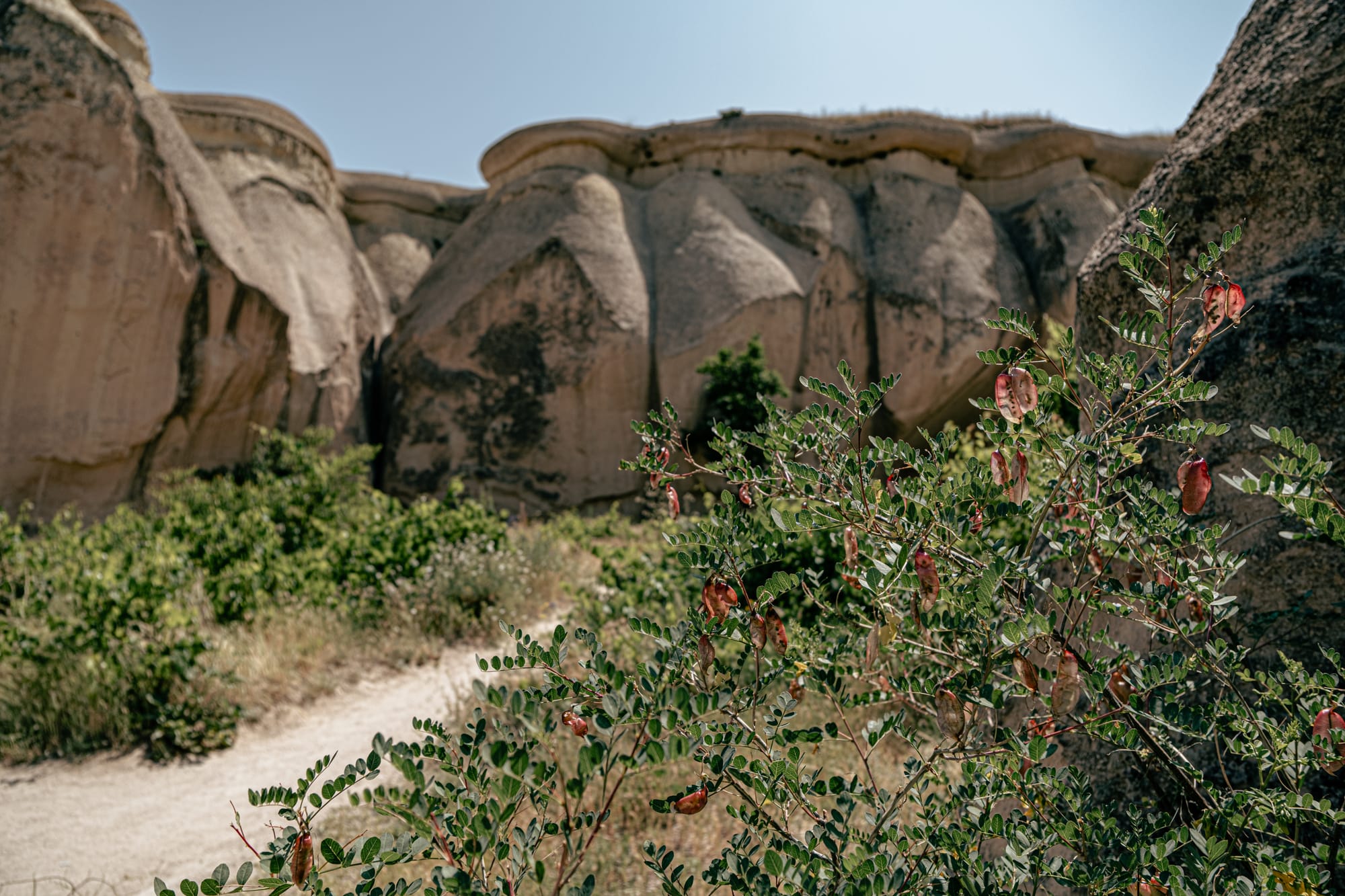 Seed pods and greenery growing among the rock formations in Paşabağ