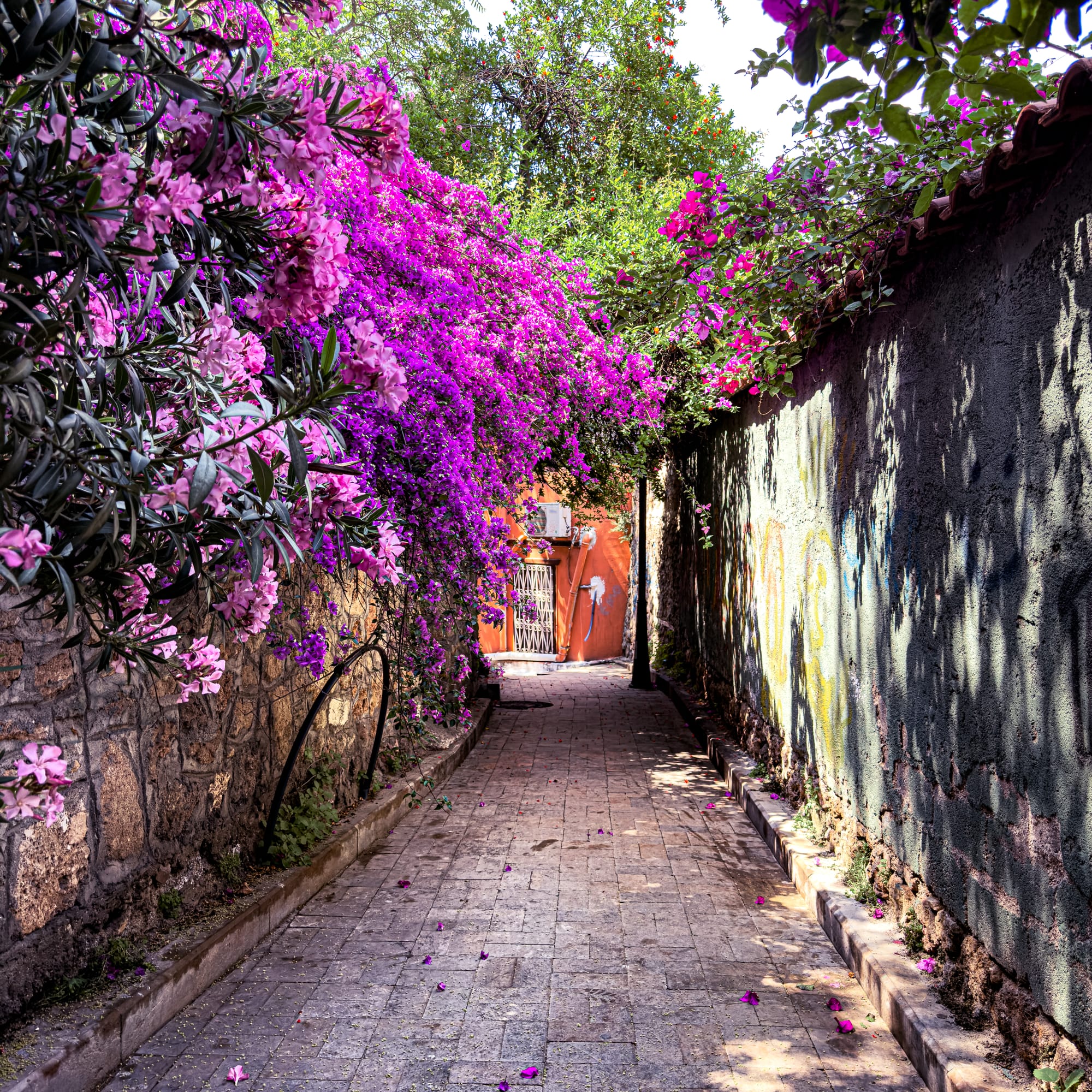 Antalya’s old town, Kaleiçi, is a walled historic district of narrow alleys, Ottoman houses, Roman ruins, and sea-facing courtyards. Bougainvillea spills over stone walls, and the streets are full of cats, cafés, and faded beauty. Read our post.