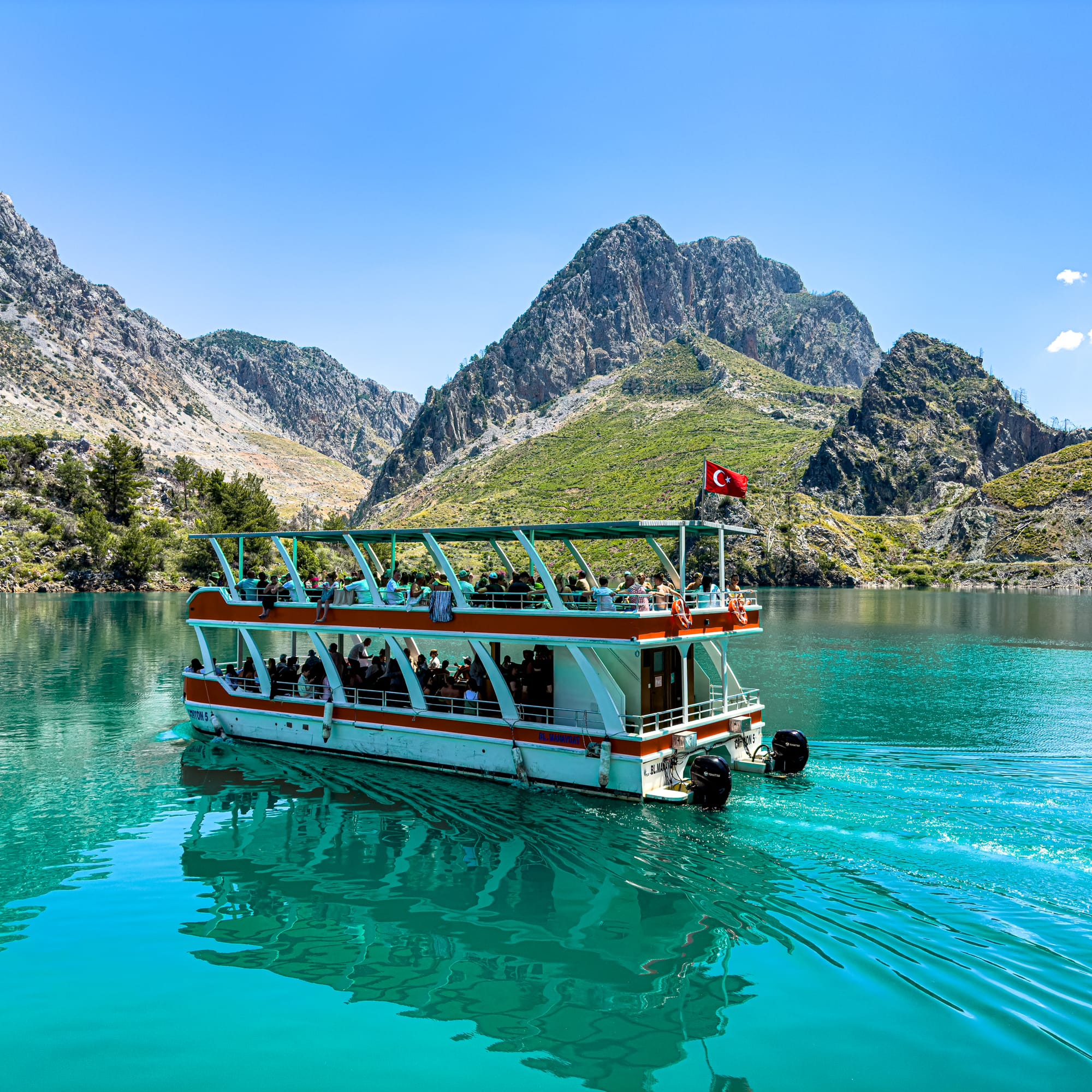 The Green Canyon is a freshwater reservoir and scenic gorge near Manavgat, surrounded by forested cliffs and turquoise water. It’s a peaceful spot for sailing and a quieter inland contrast to the coast. Read our post.