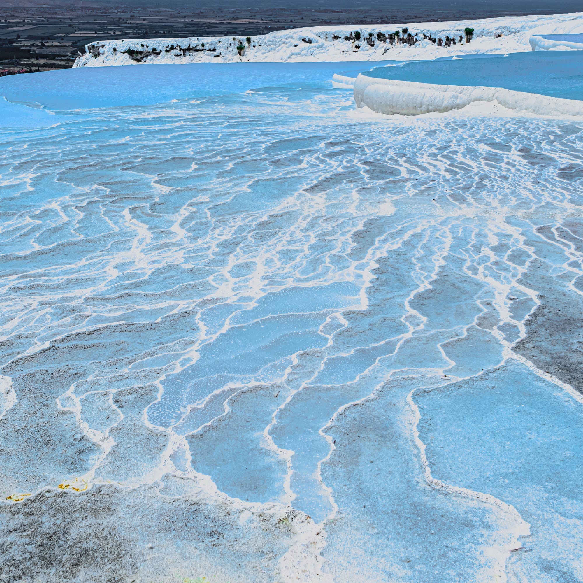Pamukkale is a surreal landscape of white travertine terraces formed by mineral-rich thermal springs. Visitors can walk barefoot along the cascading pools, soak in warm waters, and take in sweeping views of the valley below. Read our post.