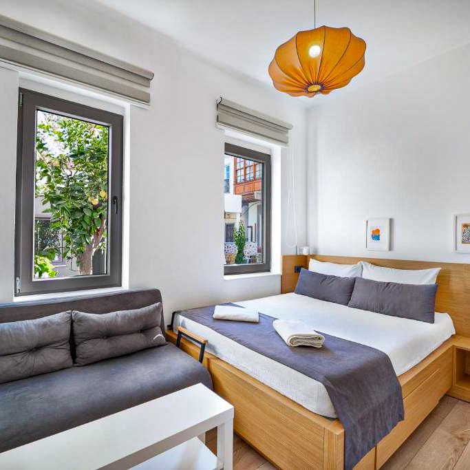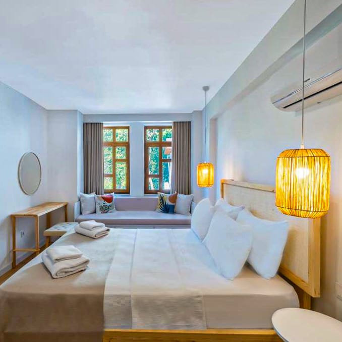 A more upscale option with wellness perks. Mai İnci offers a full spa with a sauna, hammam, steam room, and fitness center. Rooms are compact but sleek, and the location is only an 8-minute walk from the coworking. A solid choice if you’re looking for comfort a bit of post-work restoration.